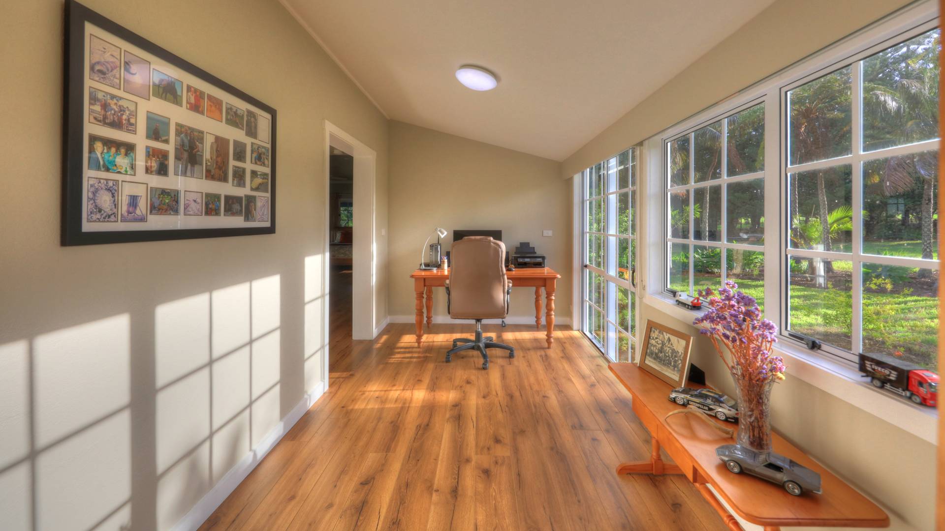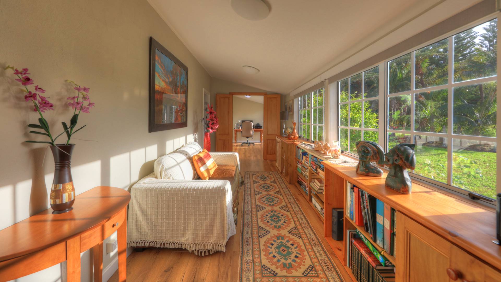 - A sunny study and reading area captures the sun for lazy afternoon reading (or dozing) sessions