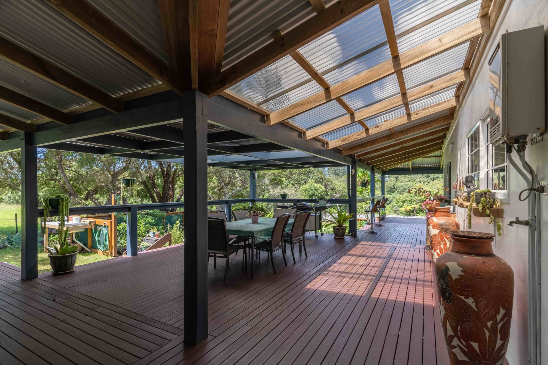 Green thumbs are welcome, but not required as the gardens are irrigated and established, utilising grey water systems and storage (10,000 gals), plus another 42,000 gals of potable tank water for use in the home - you will never be short of water to live, and garden from! Ornate floral gardens, herb and vegetable patches as well as a mature orchard mean your options for self-sustainability are already underway.