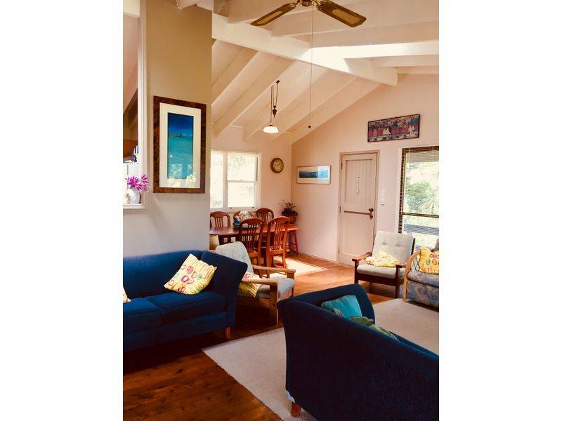 Beautiful polished timber floors throughout. An open-plan dining and lounge with high timber-beamed ceiling and cosy fireplace.