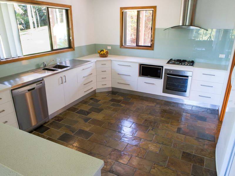 The home is spacious and set over 2 sprawling storeys. On the ground floor there is a large and immaculately finished kitchen, 2 spacious living areas including a slow combustion wood fireplace and an adjoining dining space. Both the dining and informal living space have sea views. Experience indoor/outdoor living with a grand undercover entertaining deck, directly off the kitchen. Everything has been considered and planned - including flooring, with high quality slate throughout.