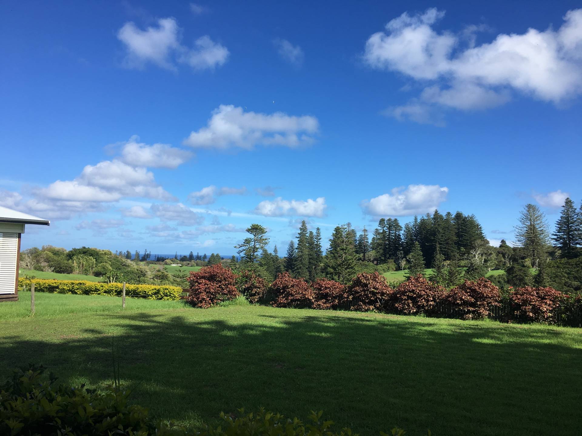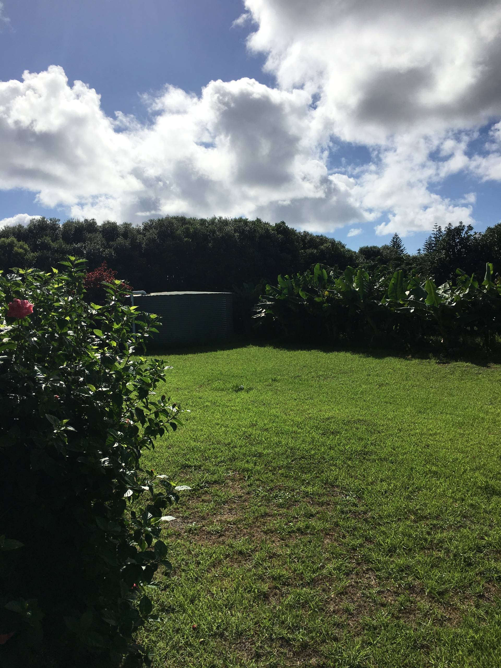 Outside there is half an acre of green grassy lawns, stands of healthy banana trees, amazing avocadoes and ample space for potential vegetable gardens and a fruit orchard to enjoy semi-sustainable living on Norfolk Island. Currently they are easy care lawns with very little maintenance required!