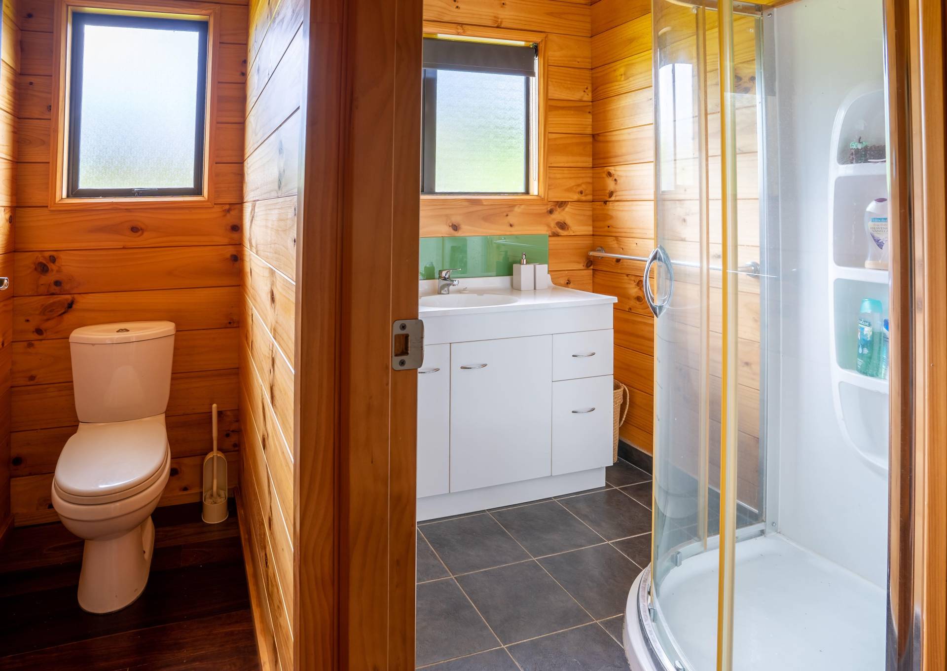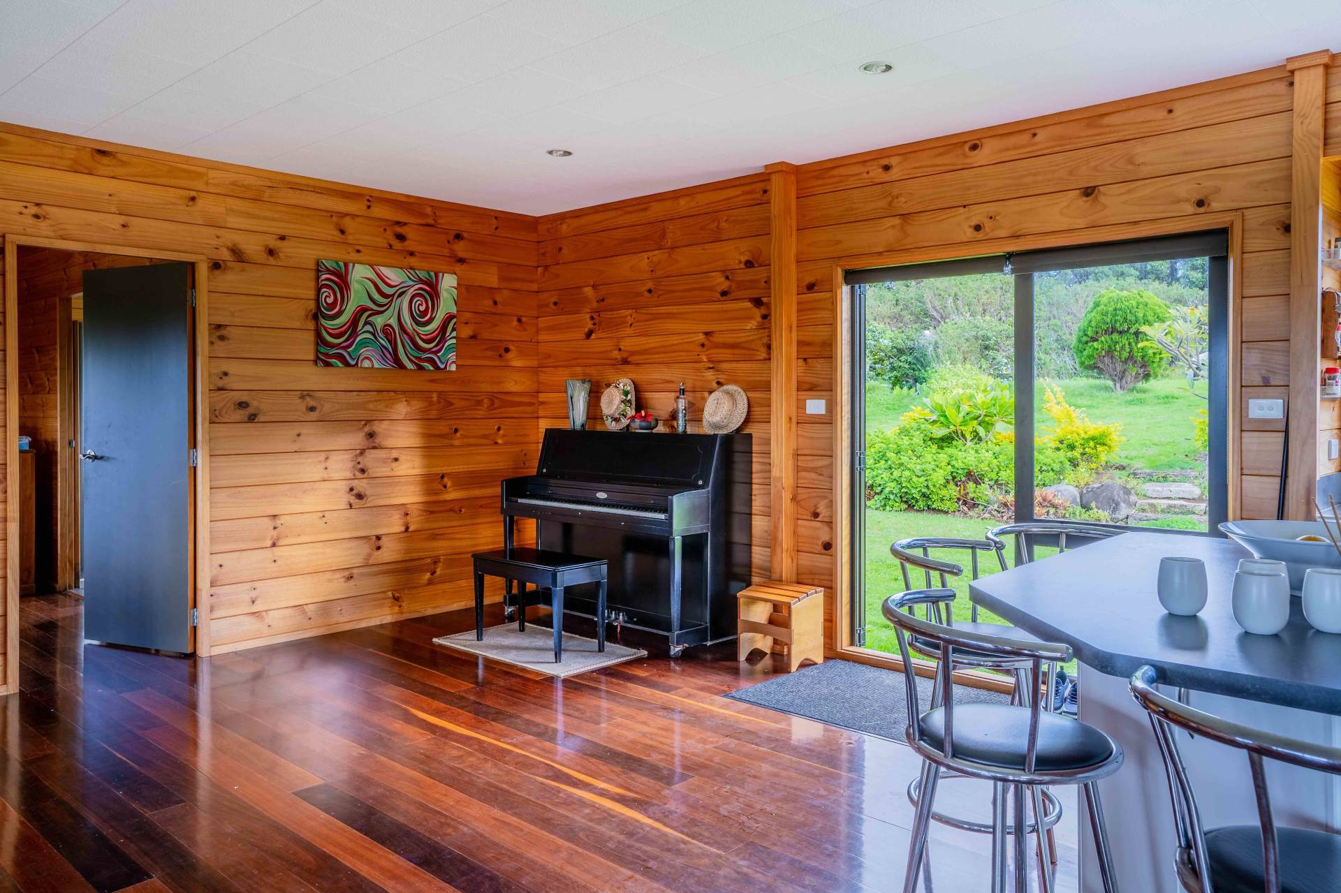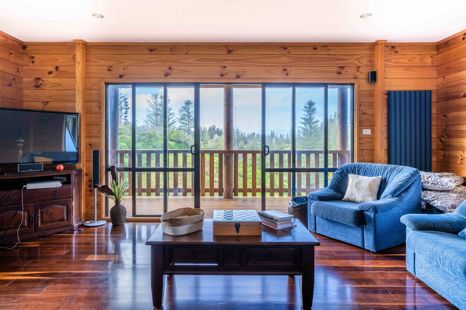 The home is perched on the top of the 1.444 hectare block, and the huge back deck takes full advantage of the sunshine and views. The land extends several hundred metres down the valley on a long portion – the serene valley view will remain unencumbered by development for as long as you wish.