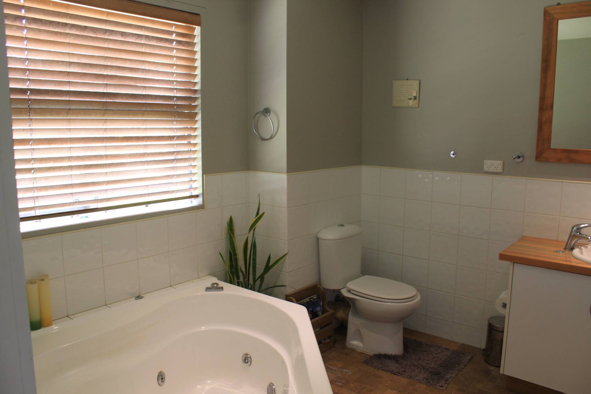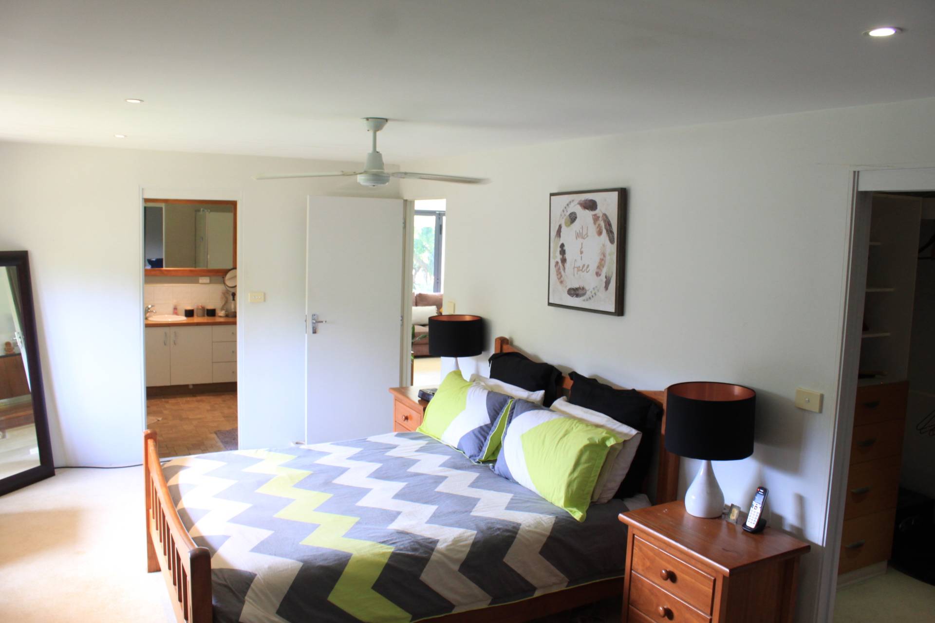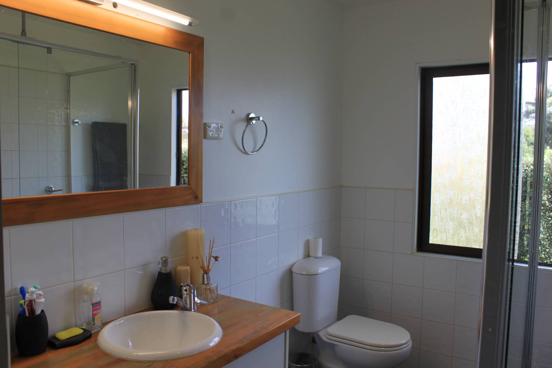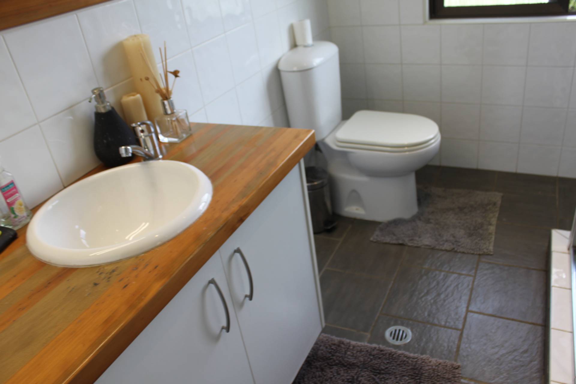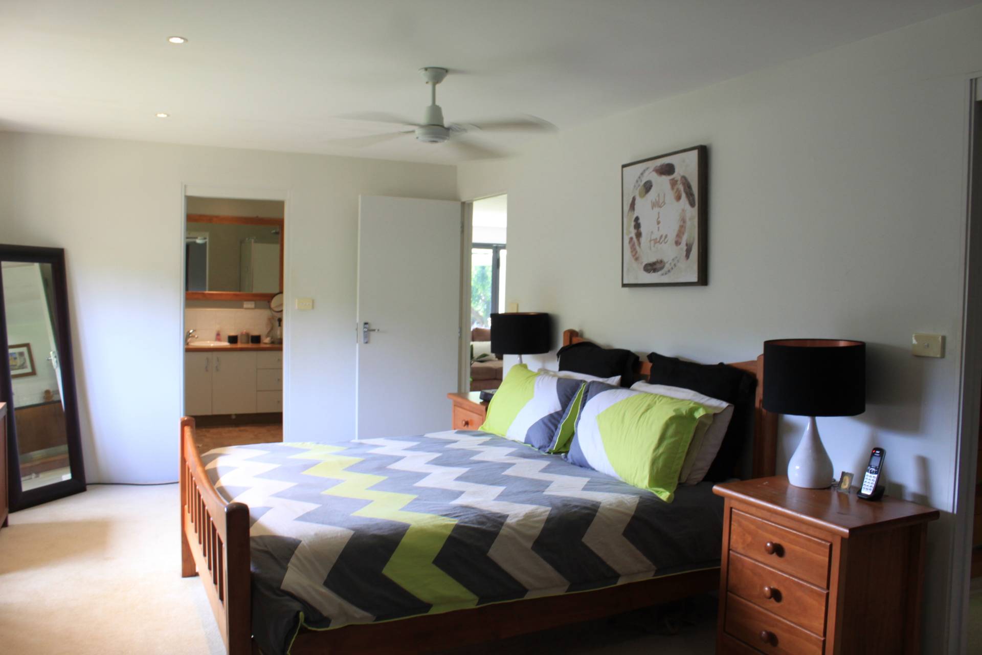 Large glass sliding doors off the dining area open the home up to outside and the extensive property beyond. There is over 1.5ha of land, including a waterfall, established fruit trees, vegetables gardens and wide open spaces. The fruit trees provide enough crop to be able to sell – the current owners have created a neat little road side stall for the overflow!