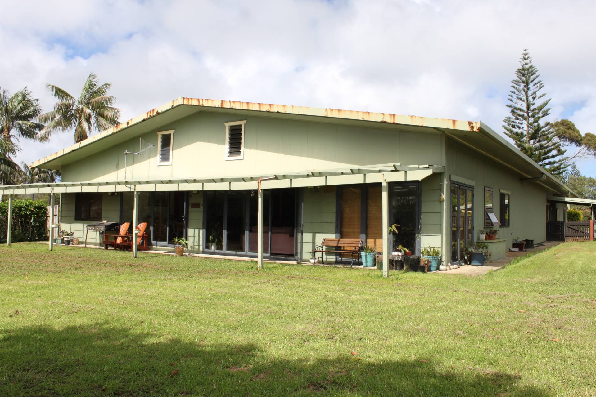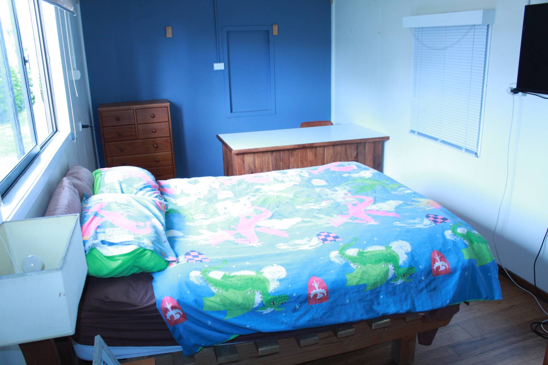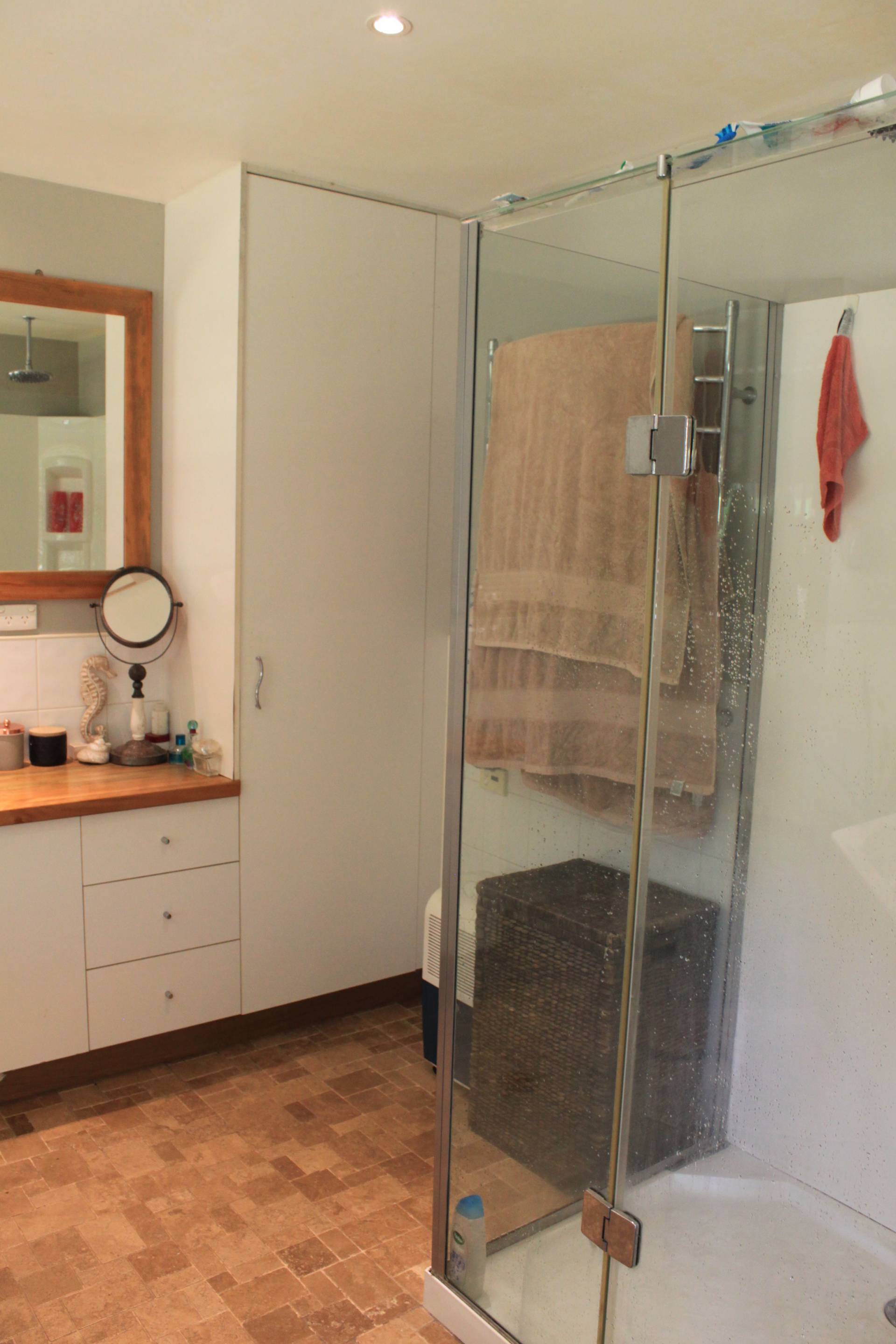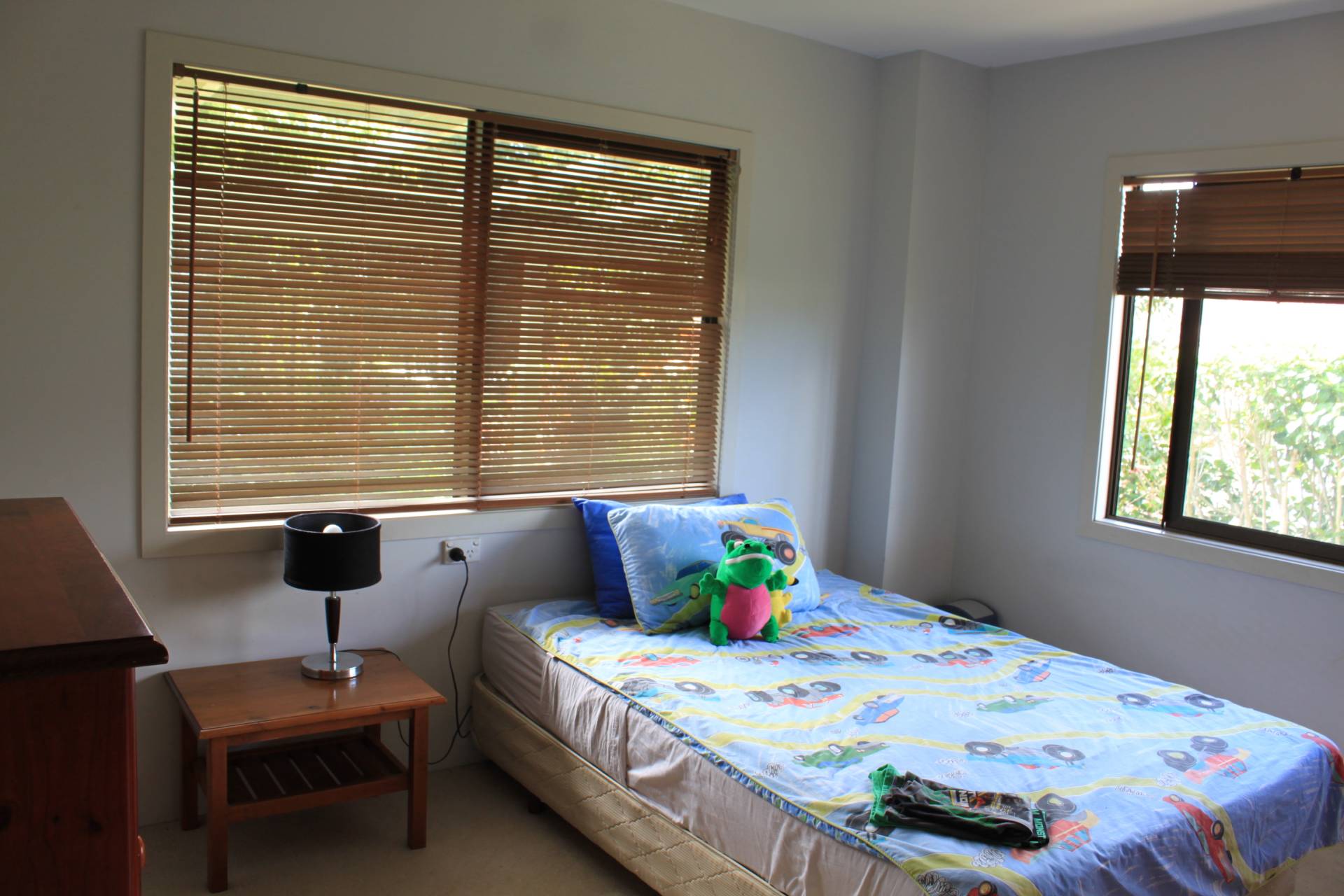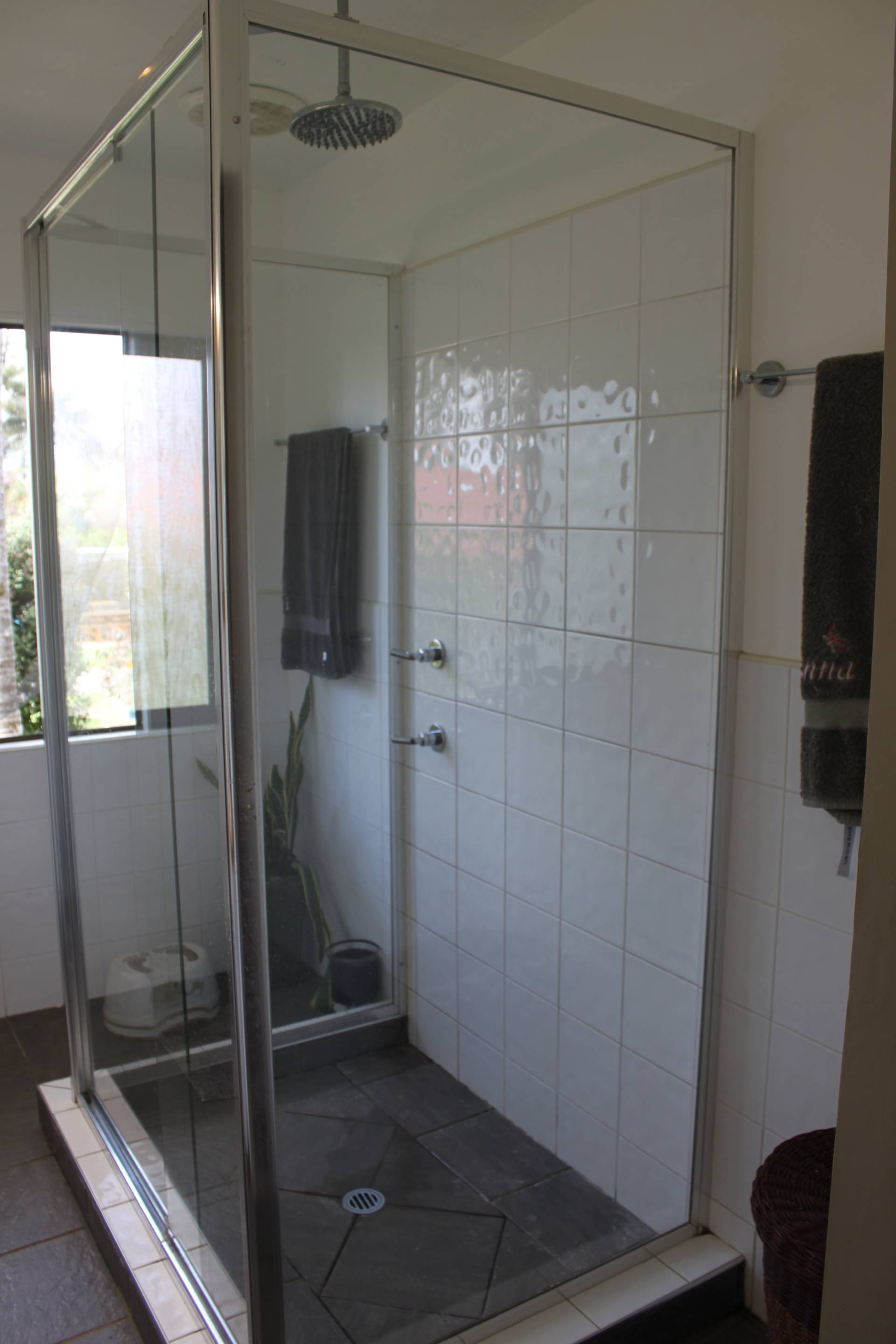 Large glass sliding doors off the dining area open the home up to outside and the extensive property beyond. There is over 1.5ha of land, including a waterfall, established fruit trees, vegetables gardens and wide open spaces. The fruit trees provide enough crop to be able to sell – the current owners have created a neat little road side stall for the overflow!