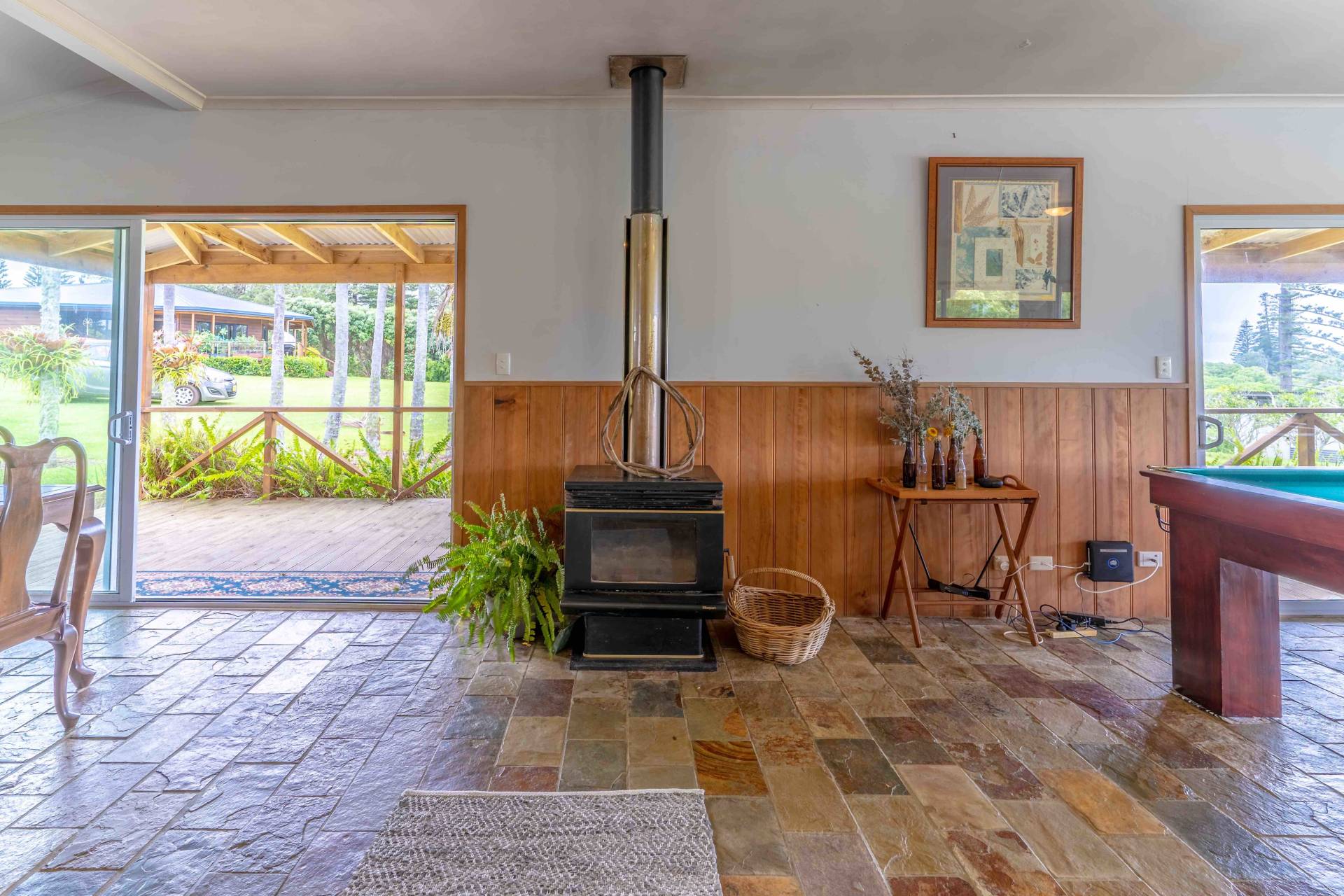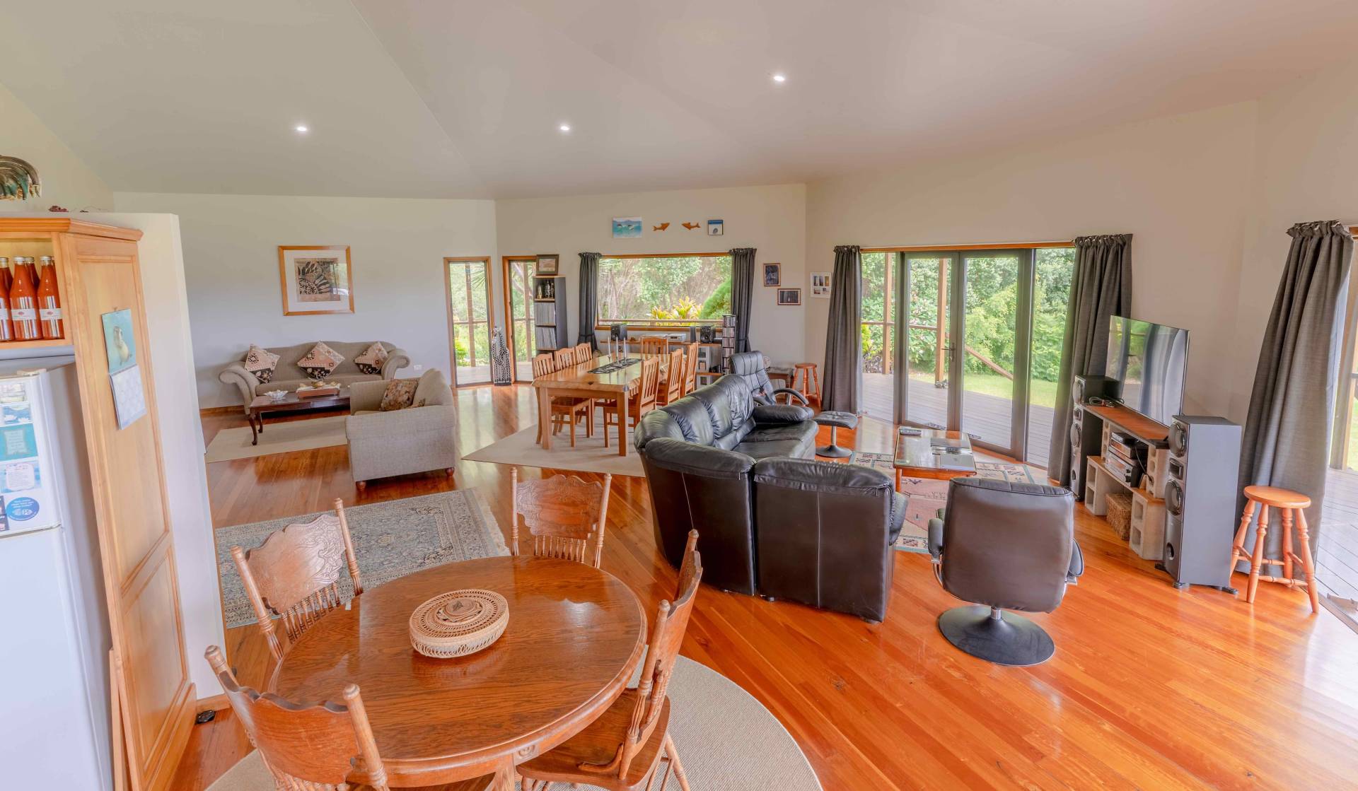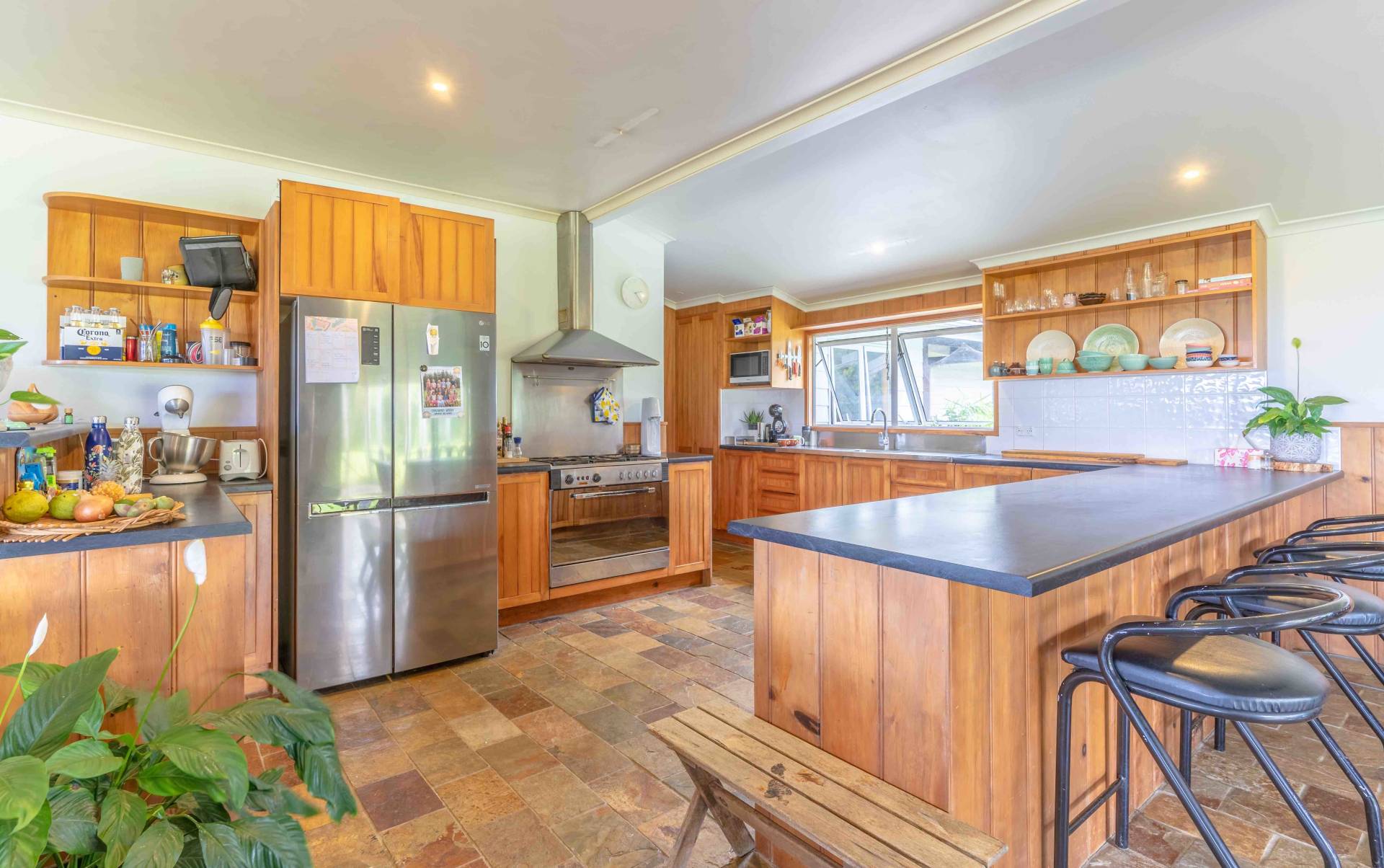 On over 5 acres of beautiful land, there is a bountiful orchard of citrus and avocados, important infrastructure such as multiple water tanks, solar voltaic panels, sheds and boundary creek access – the location of this home along New Farm Road is also much sought after.