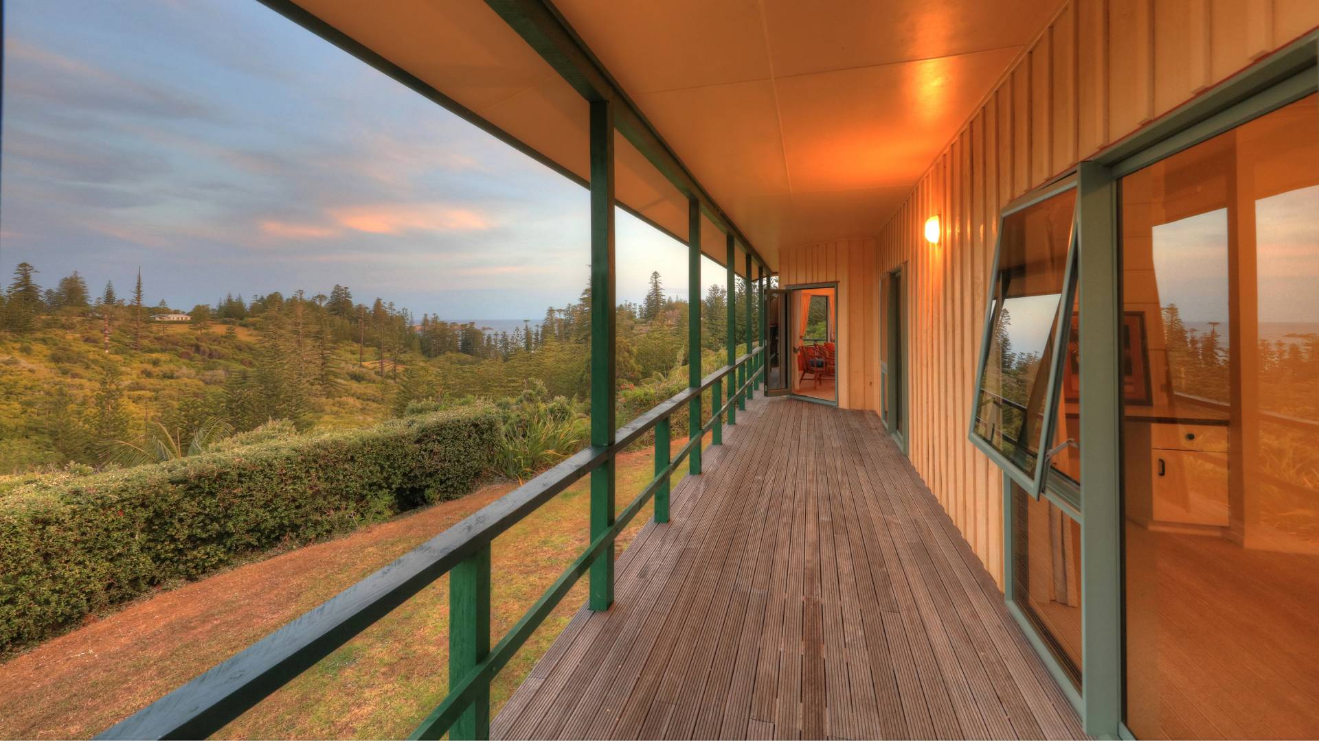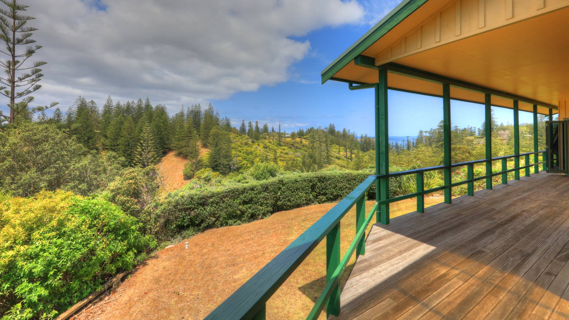 This substantial home features a main living area which is spacious and bright with large windows. High ceilings allow the natural light to filter beautifully and bifold doors lead to a verandah overlooking valleys, out to Nepean Island. A wood burning fireplace sits neatly in the corner of the lounge room, providing warmth and comfort even in Norfolk Islands’ mild winters.