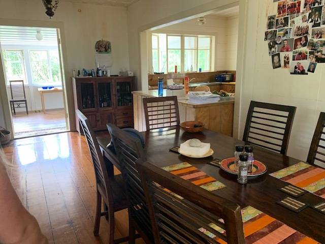 Ground floor – large living areas including wooden kitchen, dining area with fireplace and separate living room