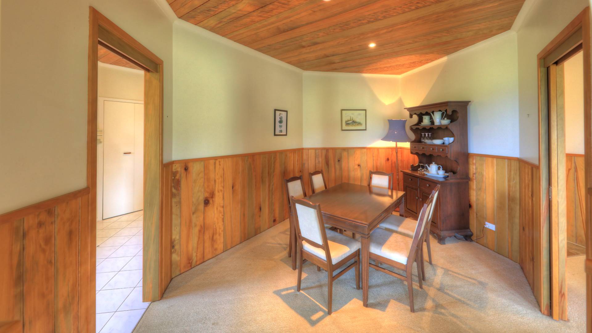 A separate dining space connects the kitchen to the living areas and allows for cosy dinner parties, or quality family time. A tidy kitchen includes a walk-in storage pantry, lots of cupboards and the best view in the house!