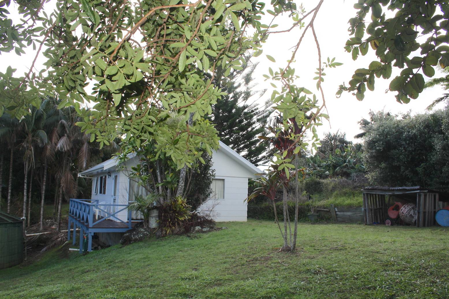 This newly built studio cottage located on one acre is hidden away down a secluded driveway. Lots of room to extend or make use of the land. Elevated it has a lovely outlook and comes completely furnished and ready to enjoy. Great for retirement or those planning to retire here in their later years. In the mean time it would make a perfect holiday home. The cleared lawn and tropical trees make this property the perfect hideaway!