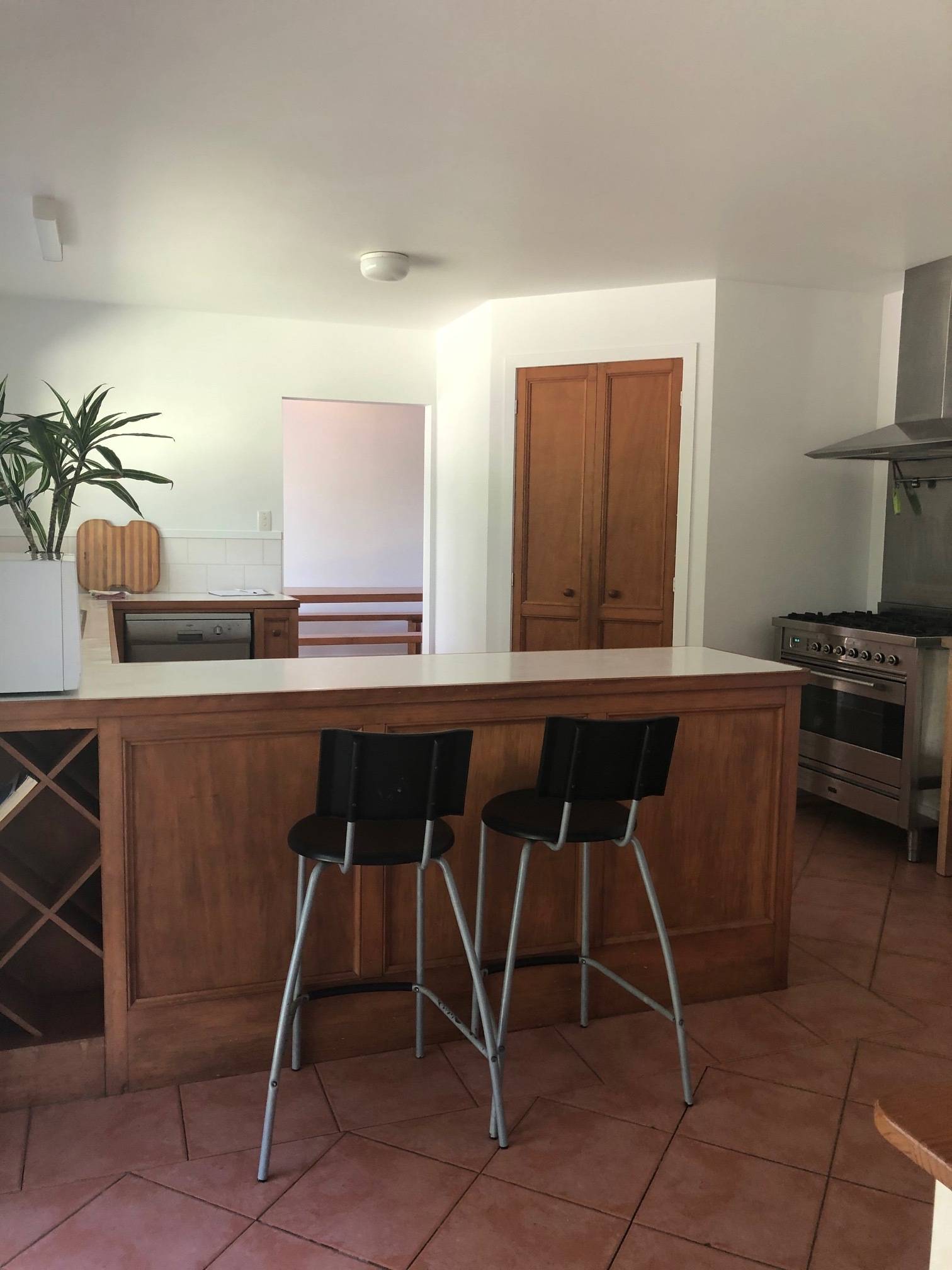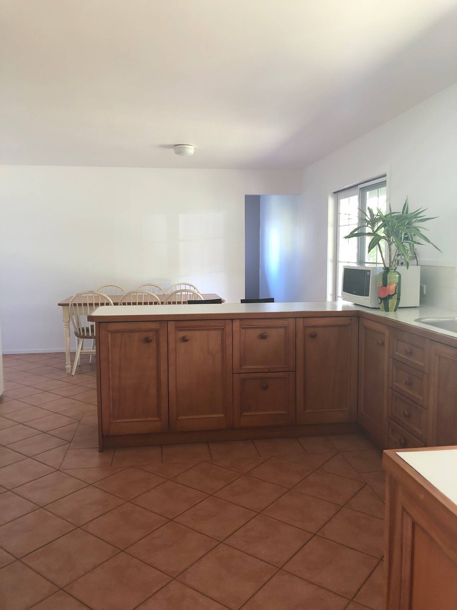 - Large modern kitchen with eat in space, as well as a large open plan living and dining area