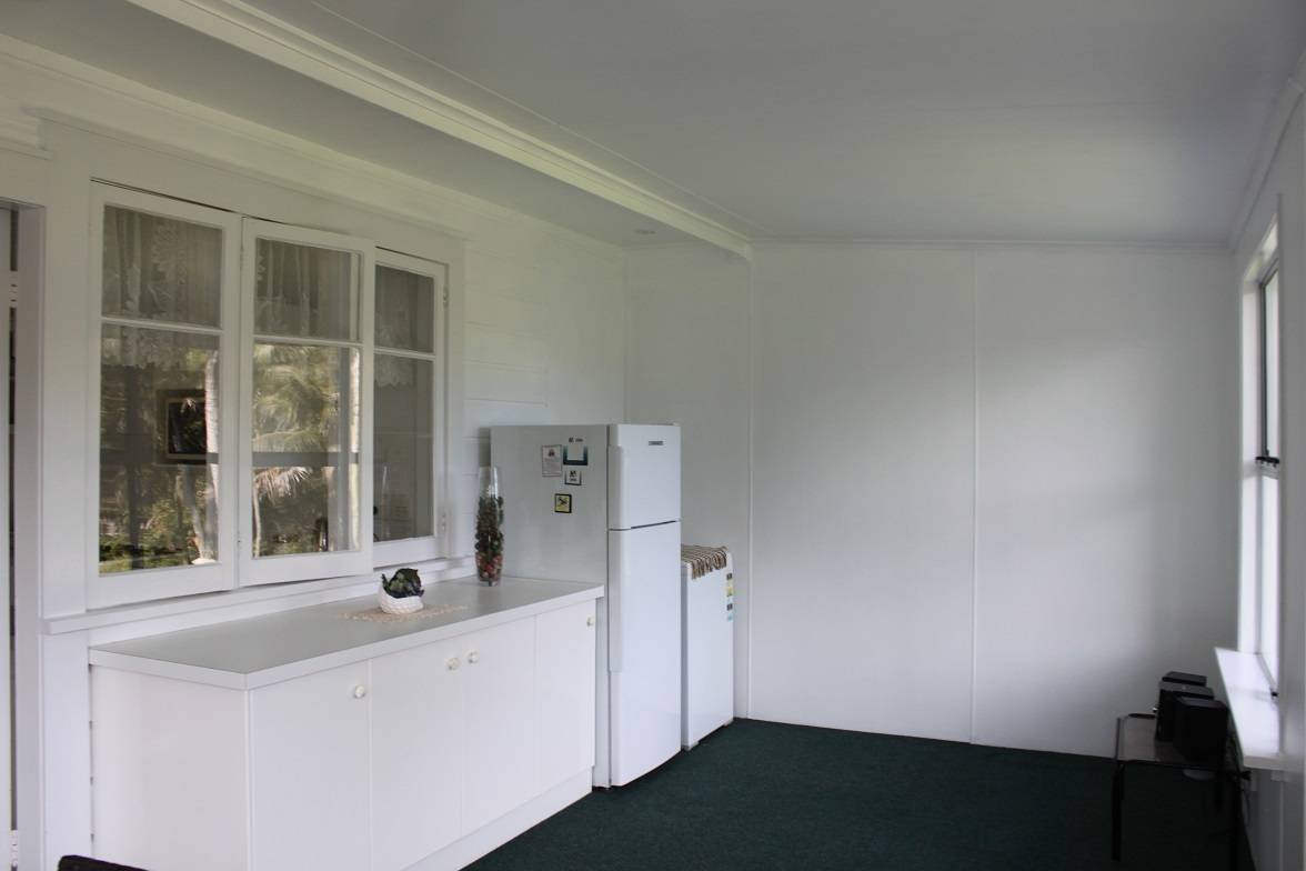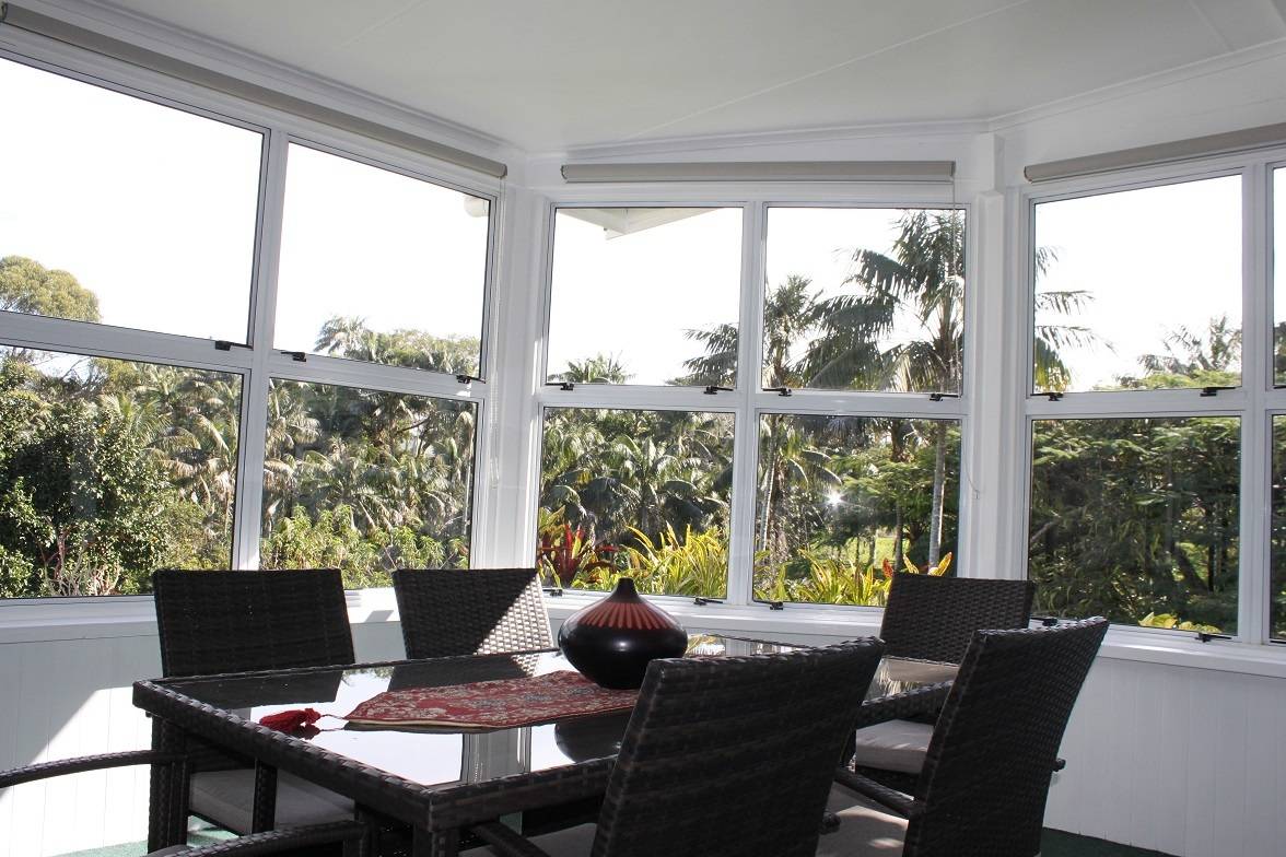 Huge sunroom with utility area and informal dining, taking in the private aspect.