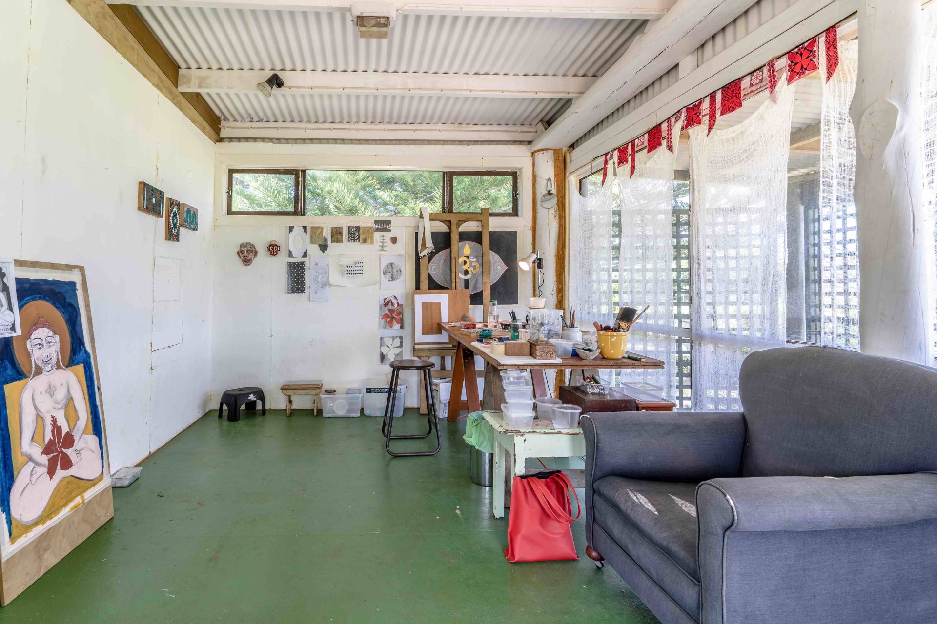 Clearly the work of a talented artist, this oasis situated just 5 minutes drive from the township and the beach oozes charm and character. Parts of the home are from the early 1900s and a house which was relocated from elsewhere on the island - the 'scars' as the owner calls them, run along the floors of the home where it was joined back together.