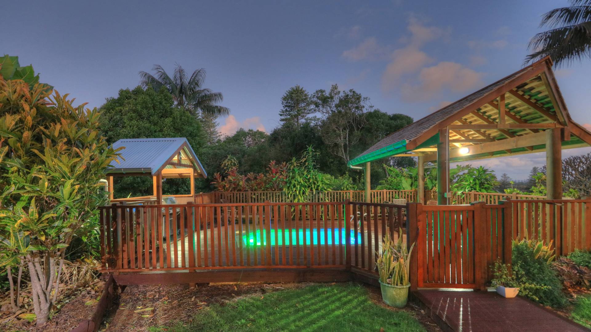 In addition there is a tennis court, a plunge pool and extensive fruit orchard for all guests to enjoy. This property has extensive grounds inclusive of native trees and forest - situated on approximately 13 acres, creating a special oasis so close to town.  Large under and above ground water storage tanks exist, with a functional bore to consolidate water security.