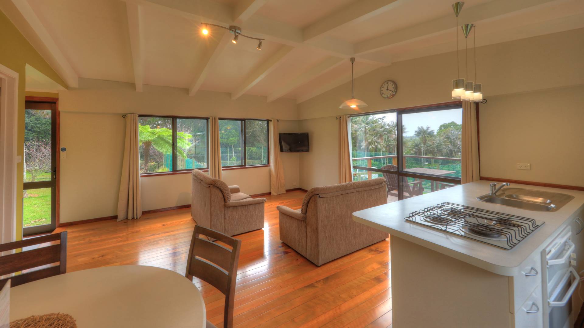 This substantial tourist accommodation complex is truly hidden away, yet the property is less than a 5 minutes drive to town. Tucked into the hillside overlooking green hillside and native forests with the ocean in the distance. Comprising of nine, one and two bedroom fully self contained units with the following configurations;