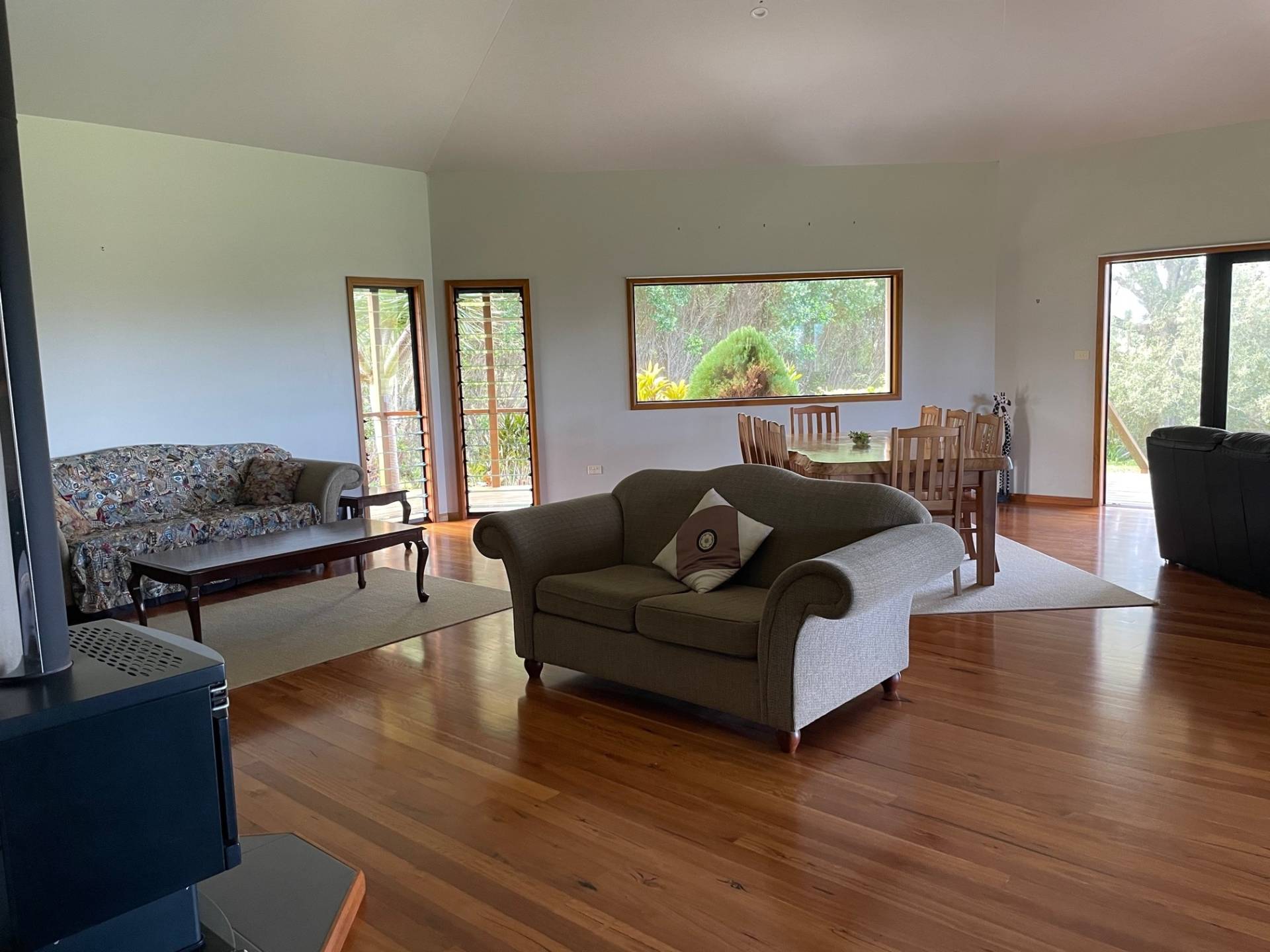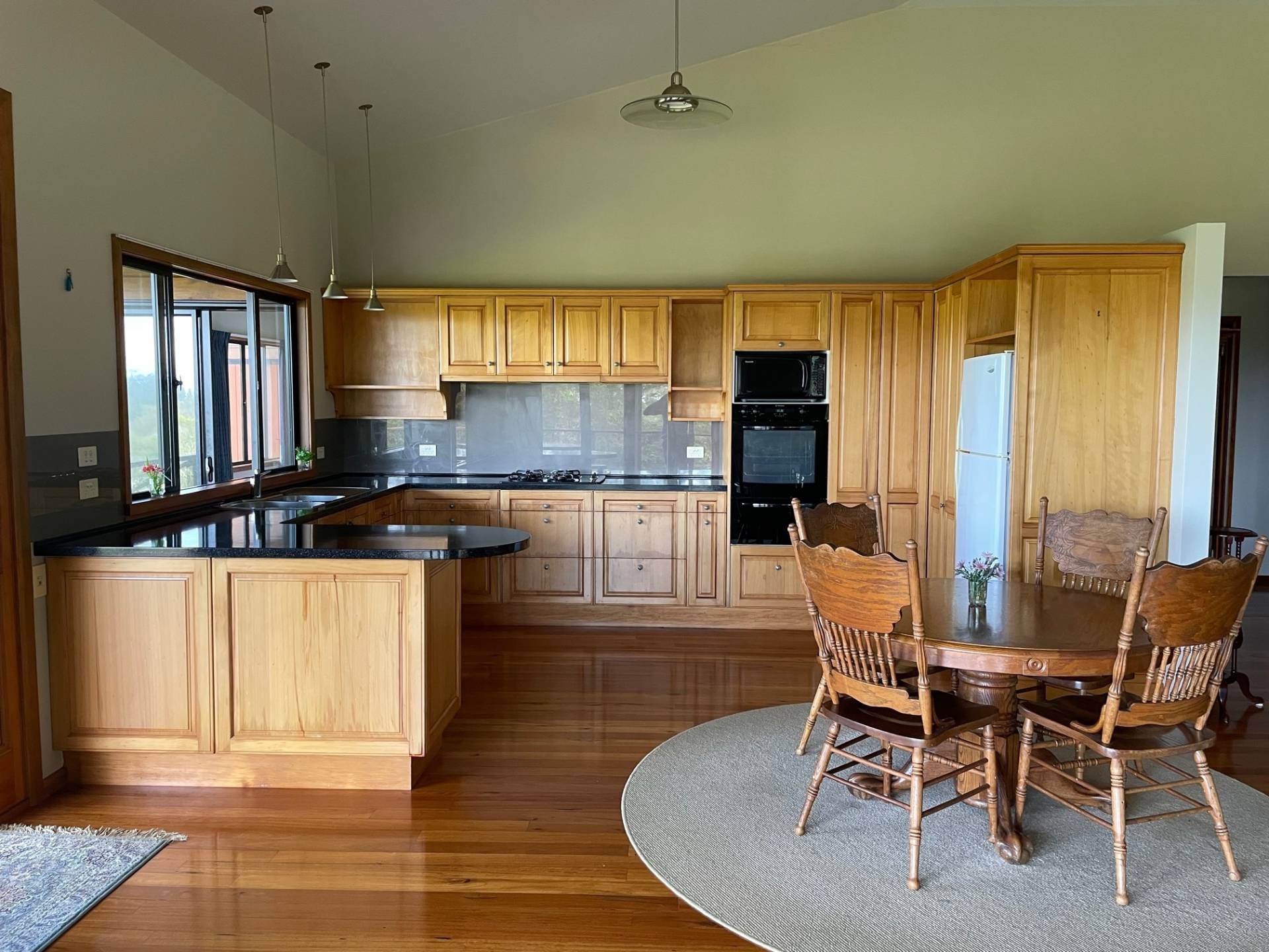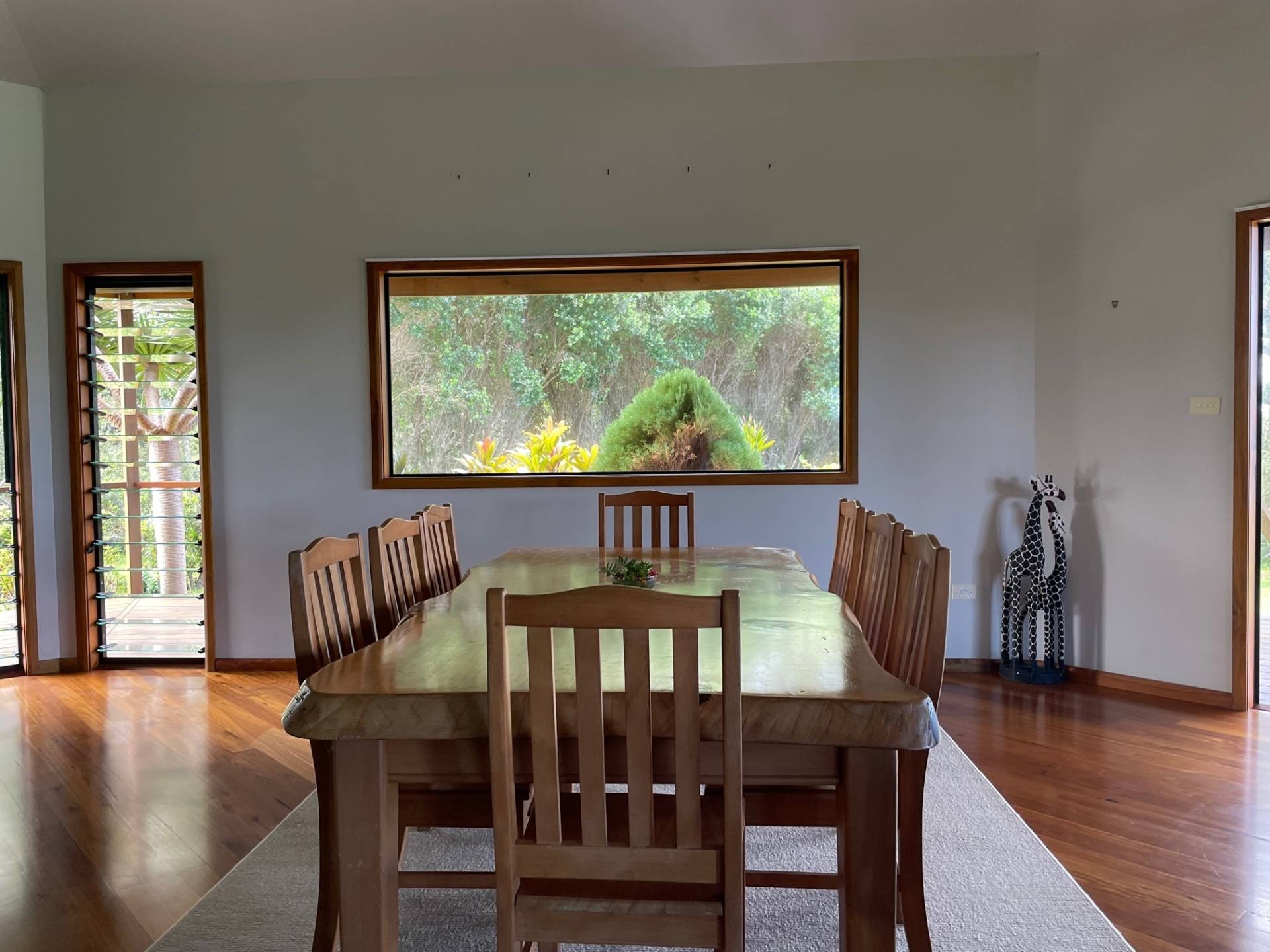 ~Open plan curved living/dining/kitchen space with French doors opening to the wrap around verandahs