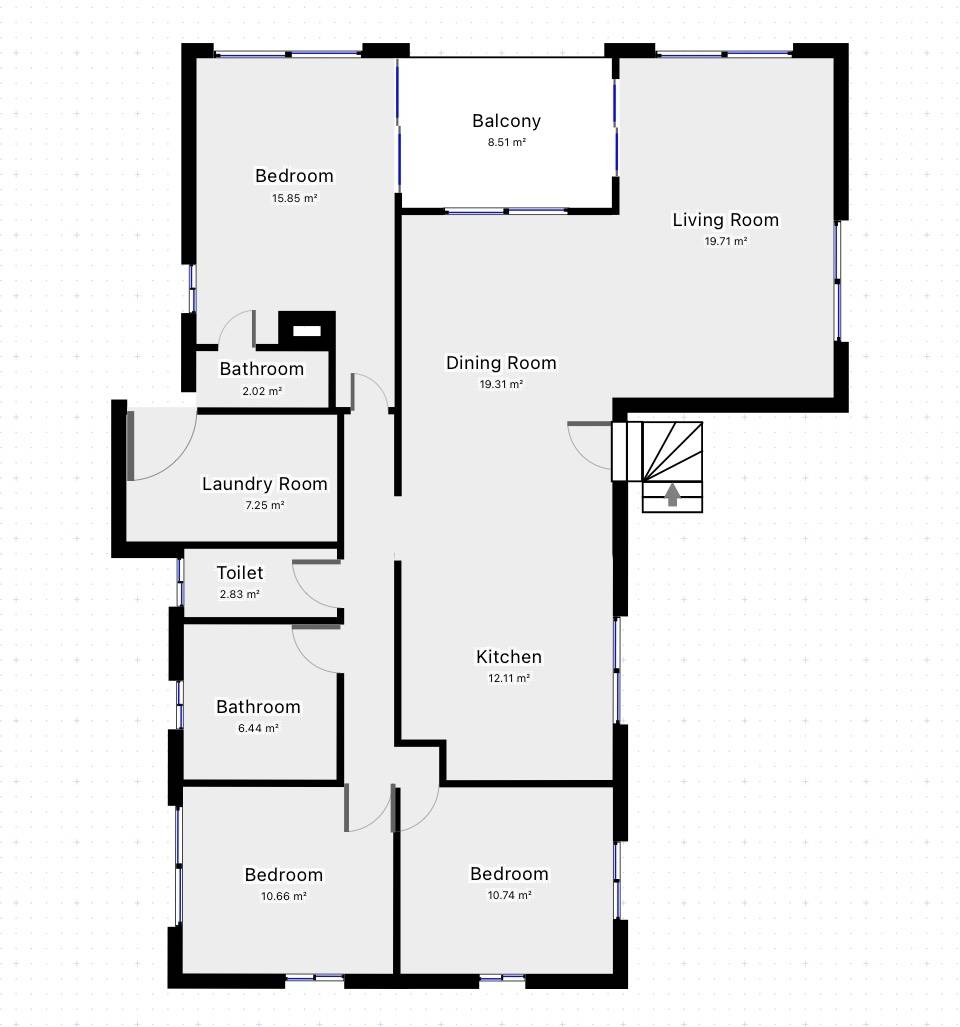 ~ 3 bedrooms / 2 bathrooms (master bedroom with ensuite and walk-out balcony)