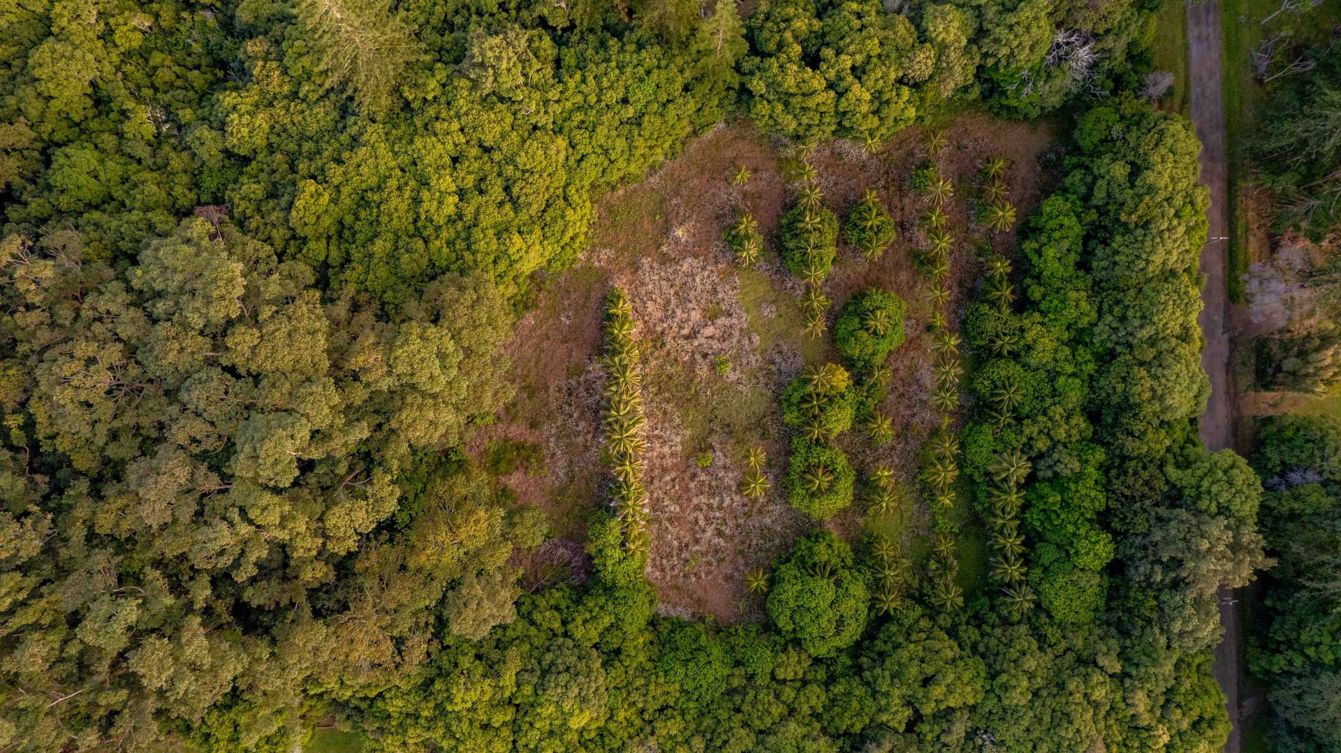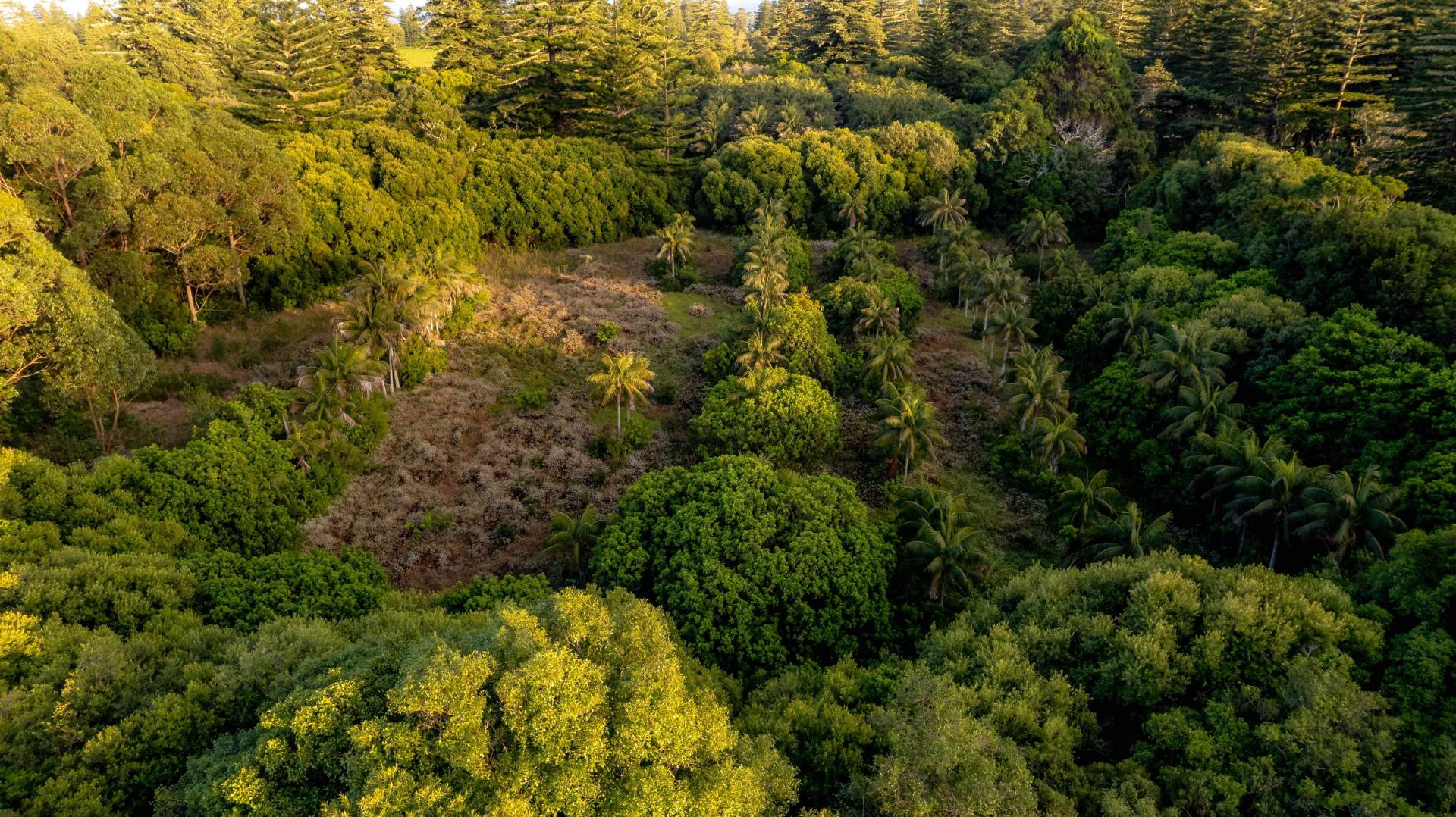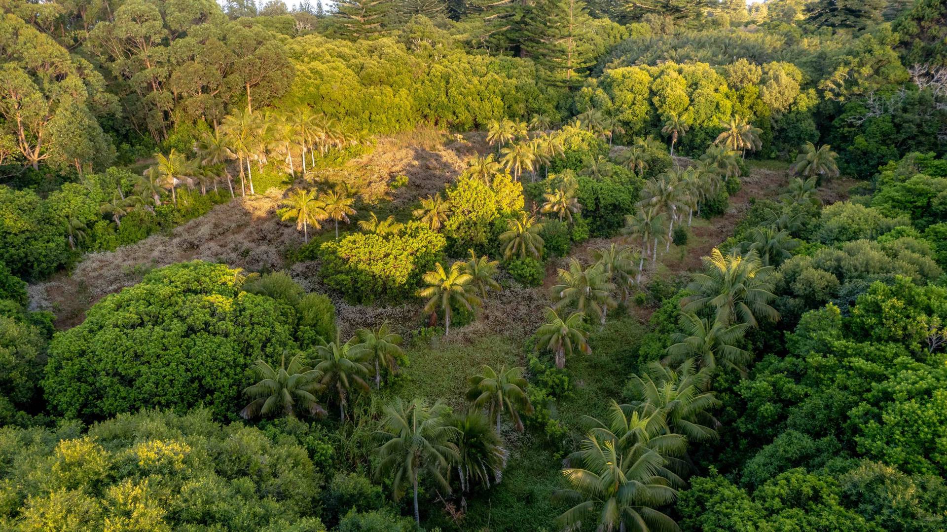 The block has been cleared in parts and the boundary is heavily laden with established trees, plus a collection of Kentia palm trees beautifully placed in the centre of the block.