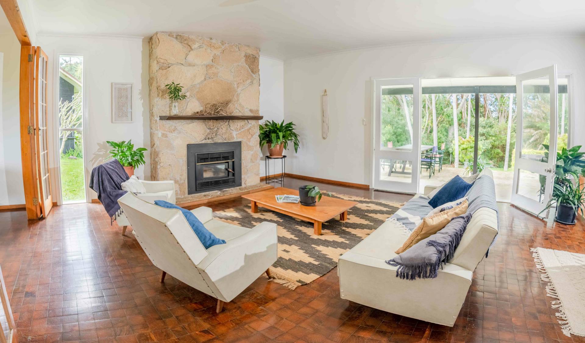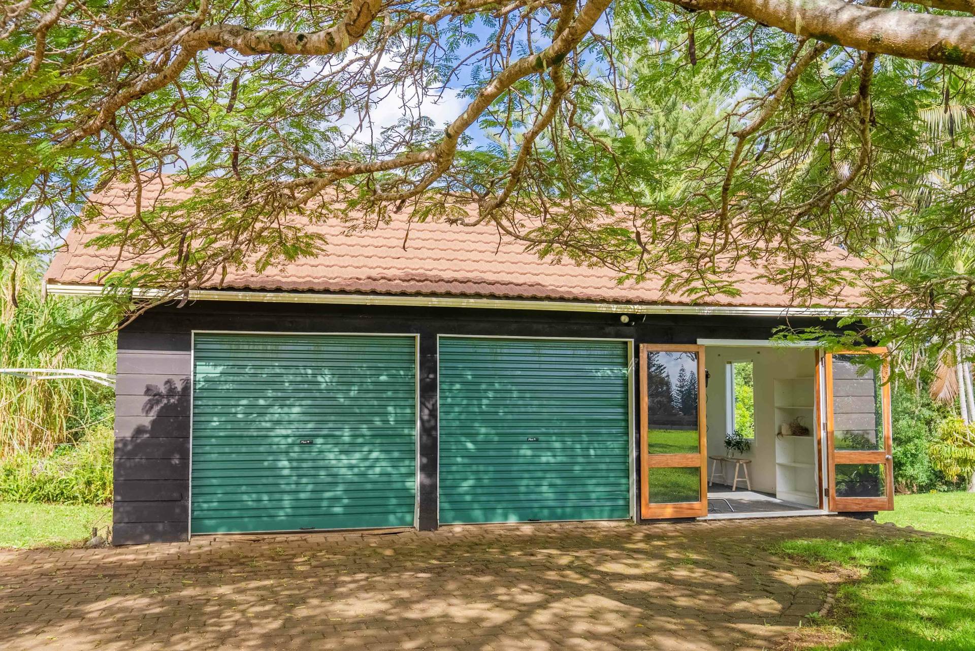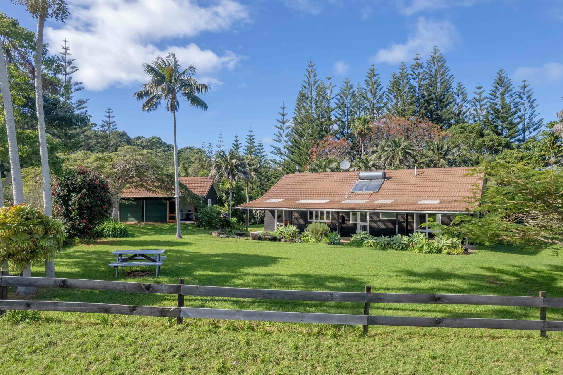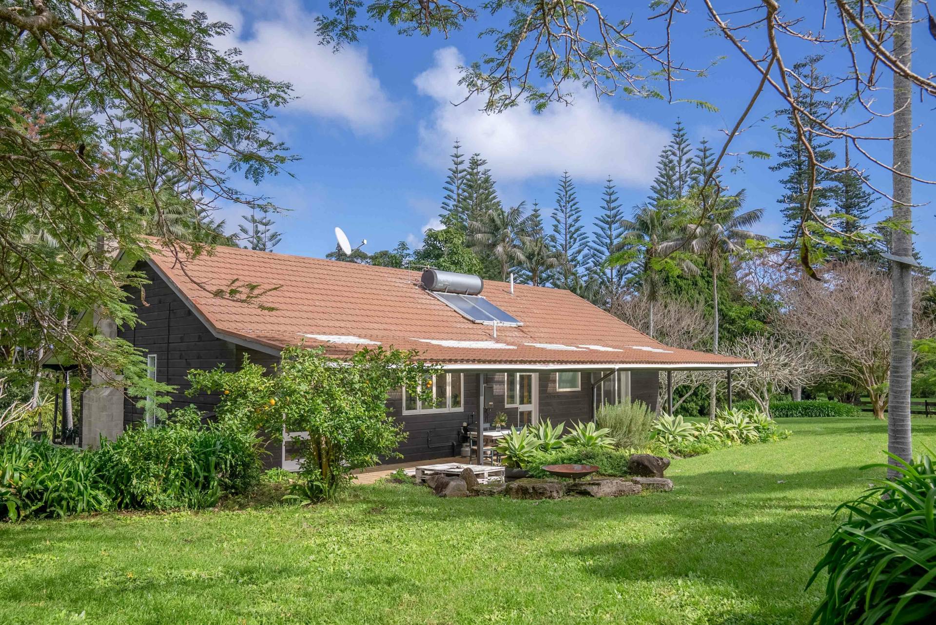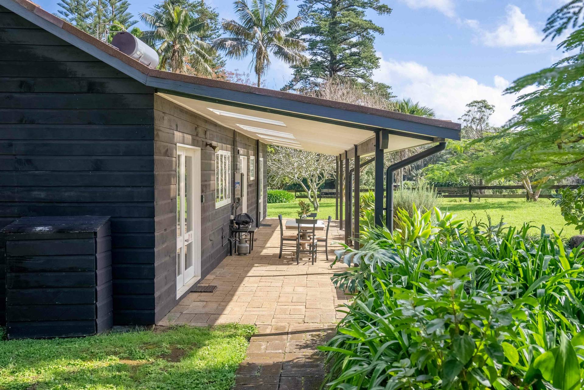The three-bedroom, two-bathroom main house has spacious living areas with double opening doors to undercover outdoor areas, renovated bathrooms, well proportioned bedrooms and a country style kitchen with all modern appliances. Built in the mid 1970s, the home was constructed with quality and attention to detail well-beyond most homes of that era. Norfolk Pine exterior cladding, timber doors and windows, concrete foundation pad and above spec ceiling height ensure the home has remained in vogue throughout is life, and regular updates completed (such as the bathrooms) make it modern, and move in ready.