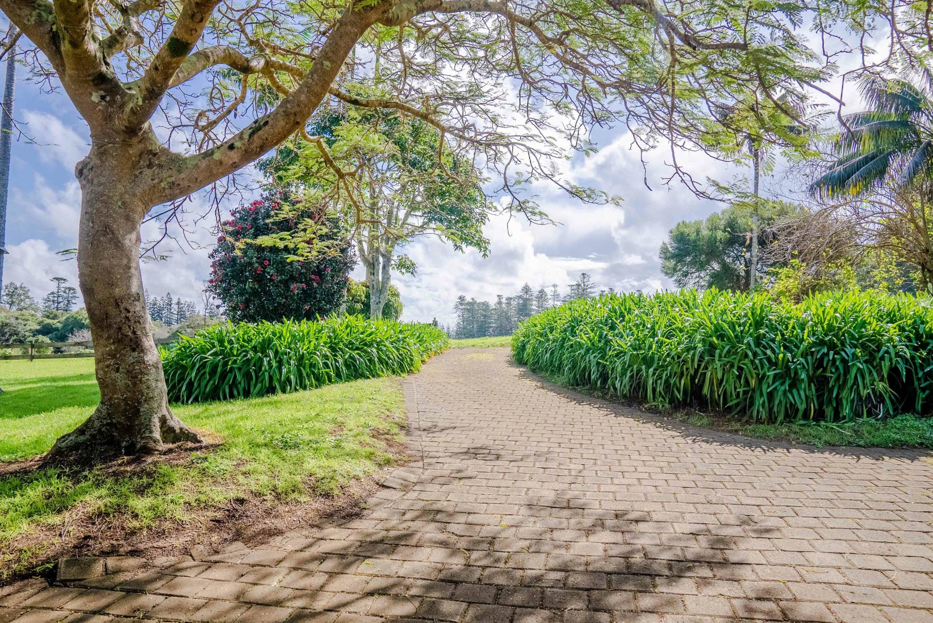 ~ Paved driveway and parking areas lined with agapanthus for a sensational springtime show