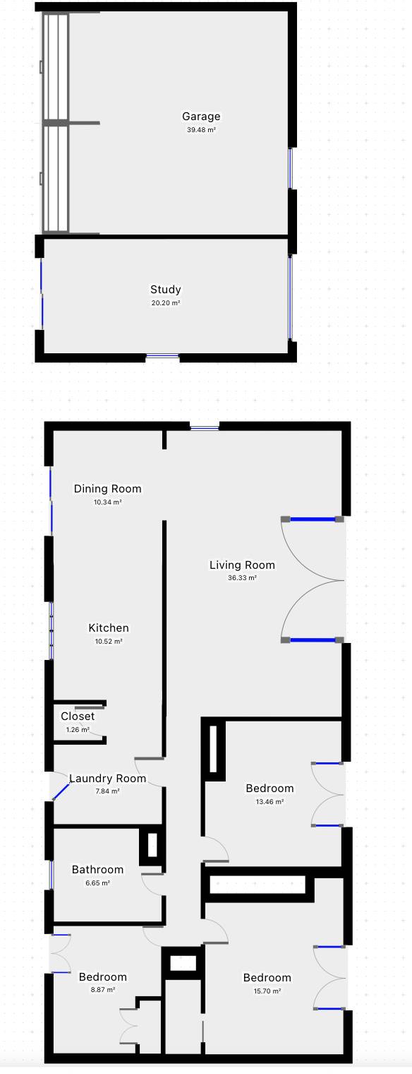 ~ Large 2 bay garage with roller doors, 3rd bay has been converted to a study/office