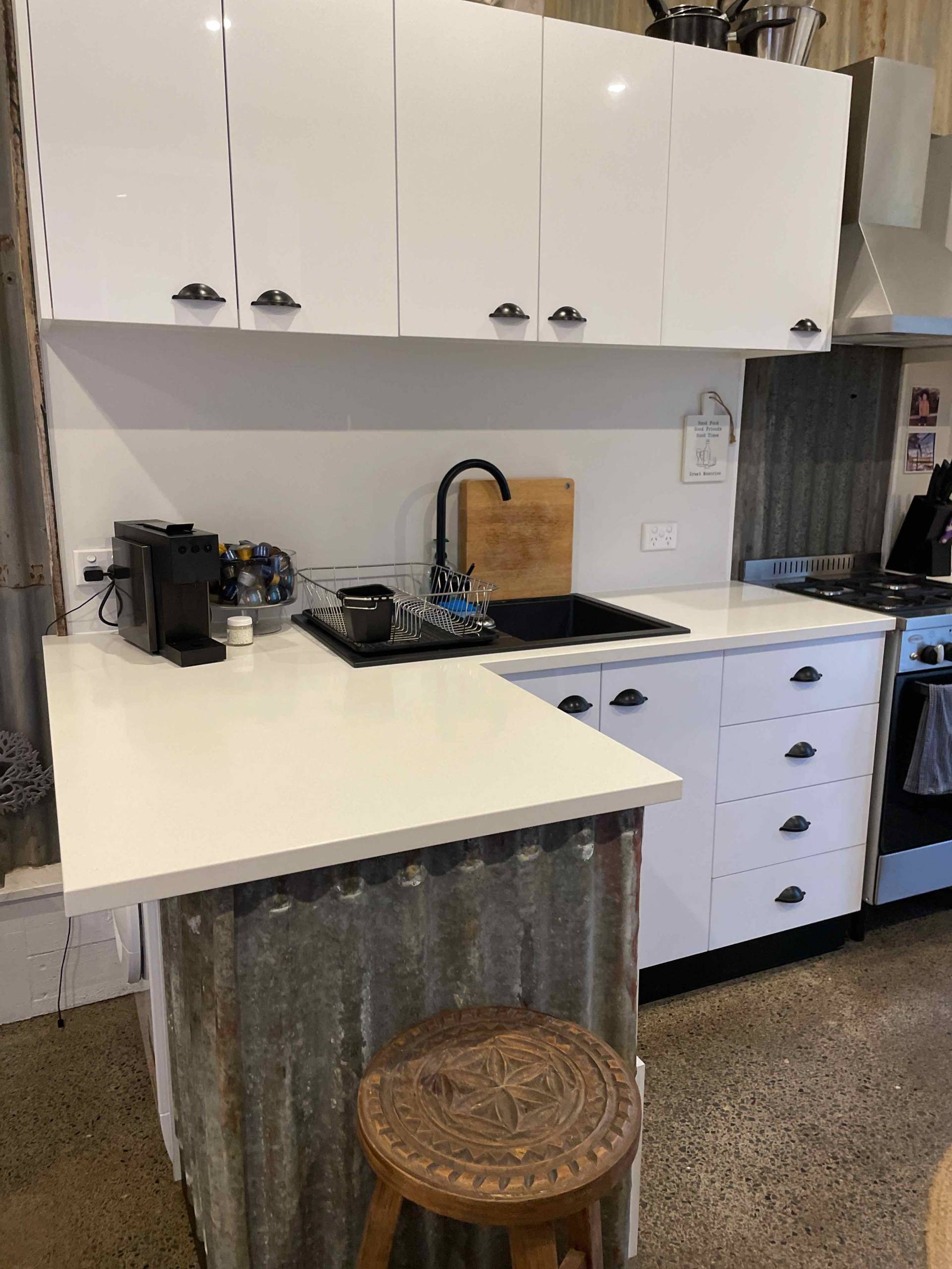 Newly renovated modern kitchen and bathroom, with rustic features throughout.