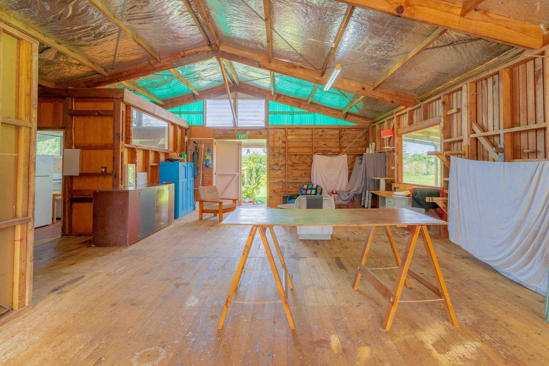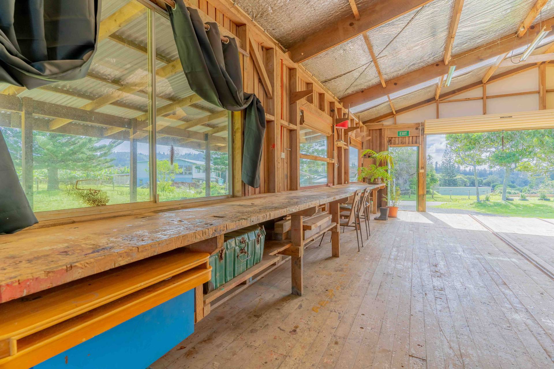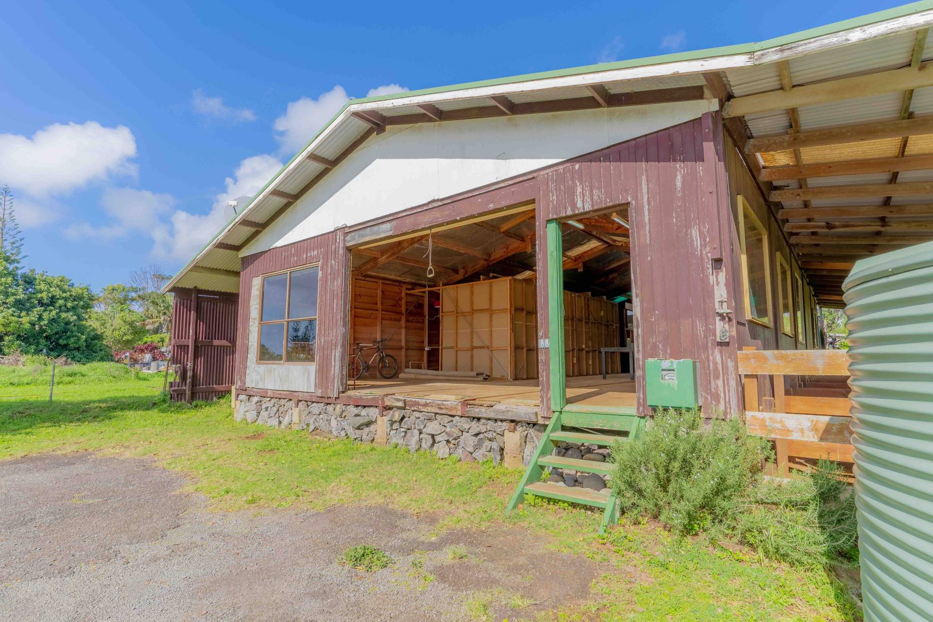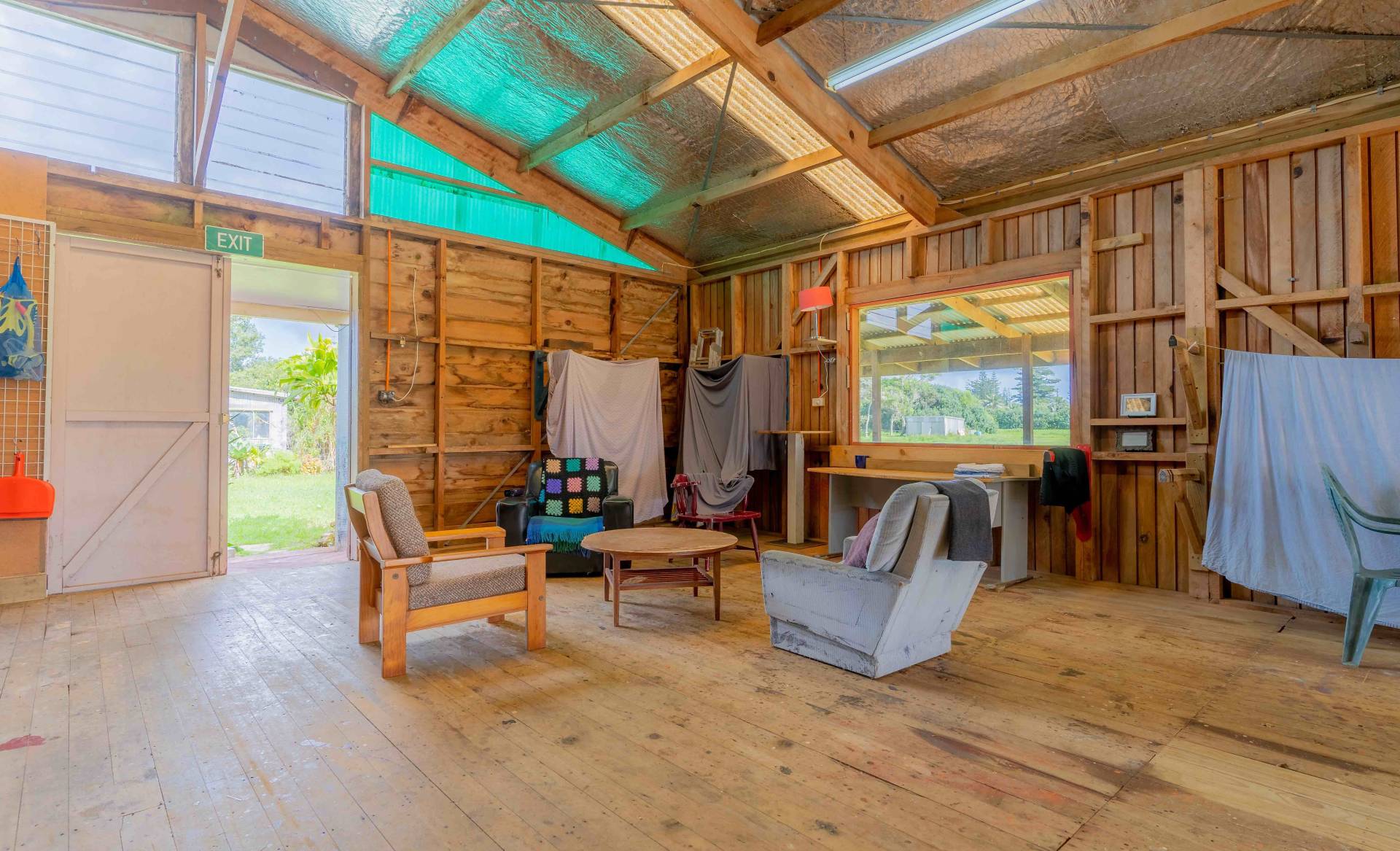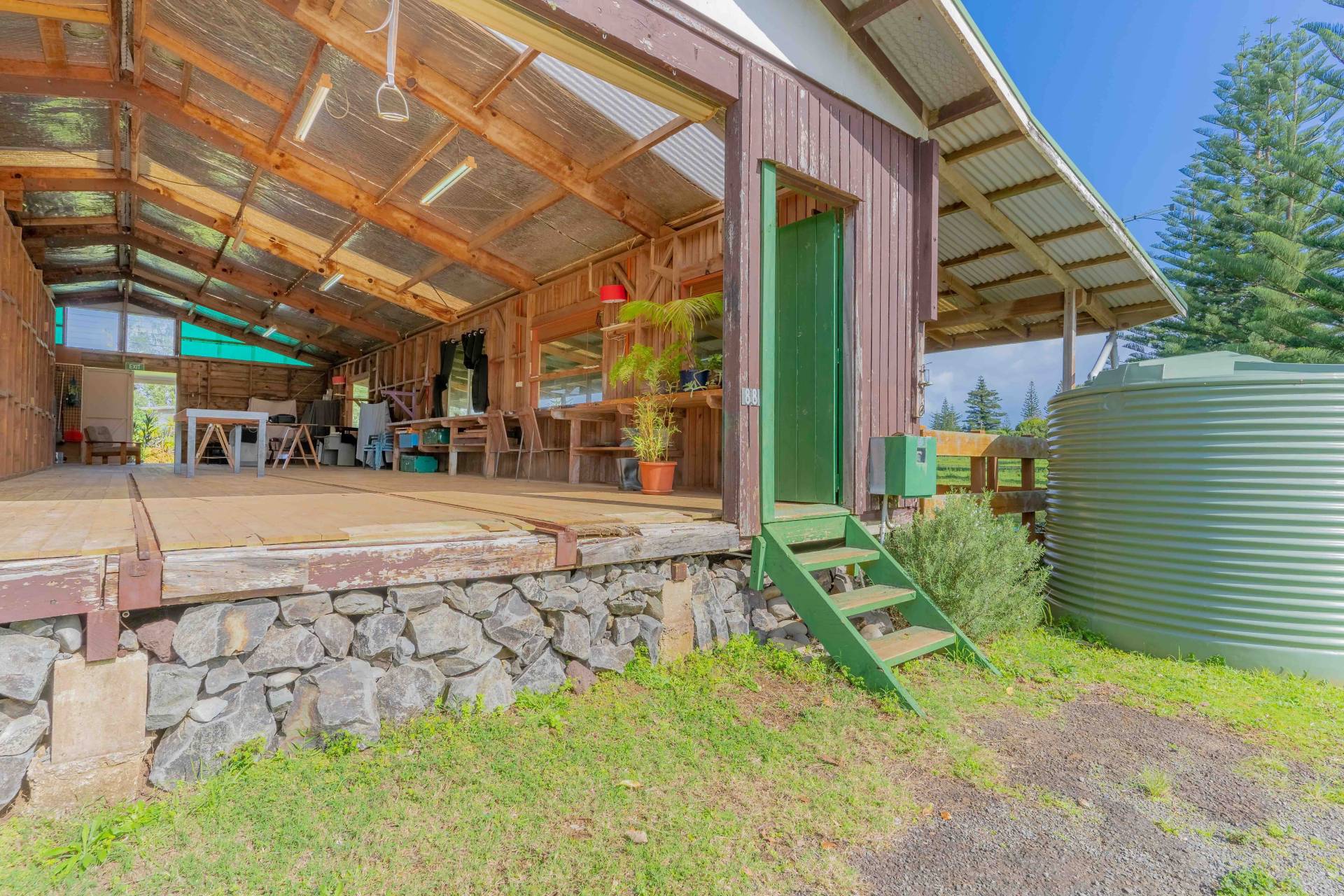 Zoned 'Rural Residential' the structure was originally built as the 'Lighter Shed' where the traditional Norfolk Island Lighters (boats used for unloading the ship) were built and stored. The original metal tracks for moving the boats are still evident in the timber floors. Since then it has been used as a Pony Club venue and art studio.