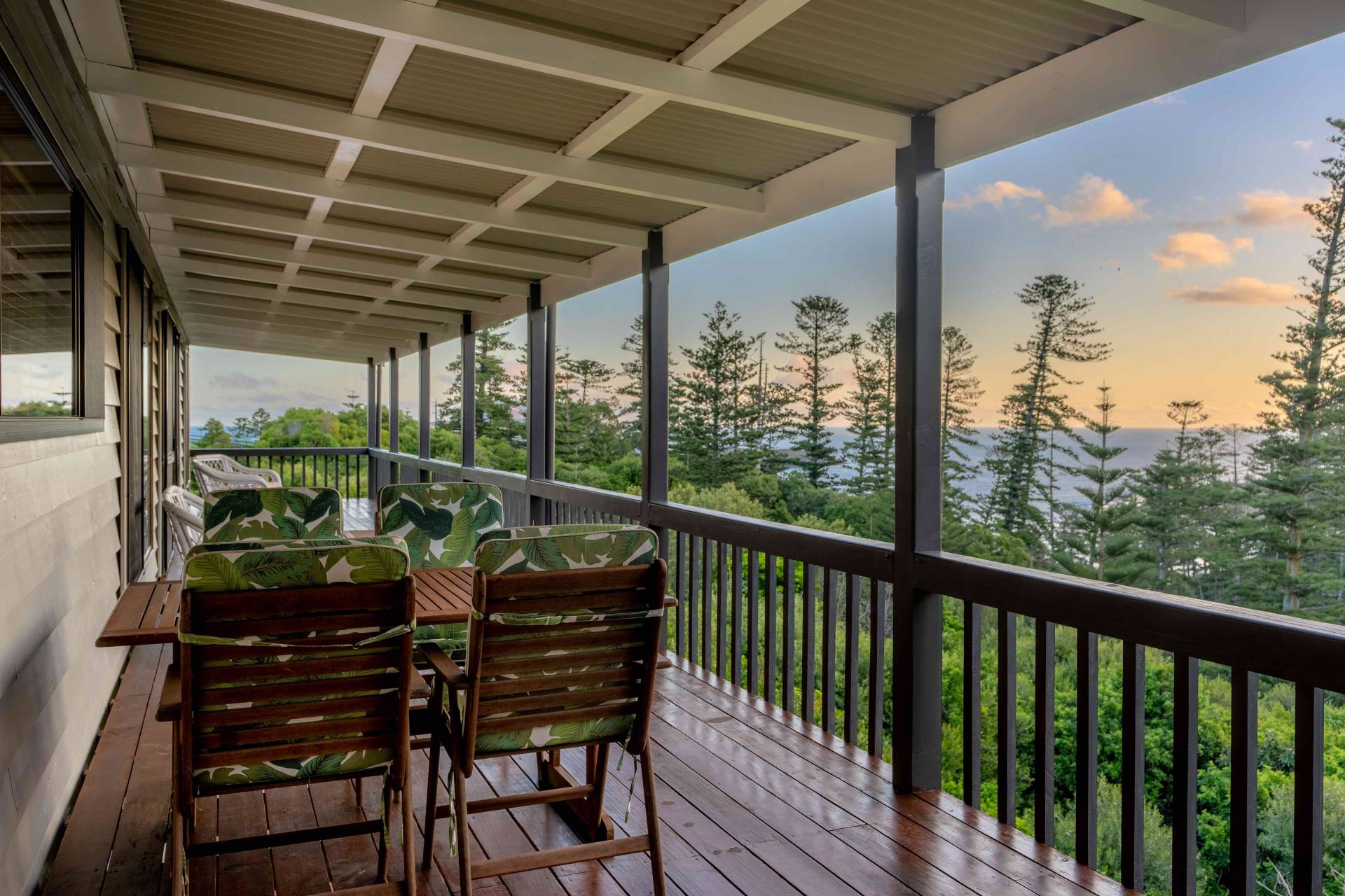Known as Kentia House, this property is situated in a beautiful sub-tropical setting - with stunning views overlooking Kingston out to Phillip Island through an ancient Norfolk Island pine forest. Sit back on the veranda and watch the birds weave between the trees and enjoy privacy and tranquility at its best.