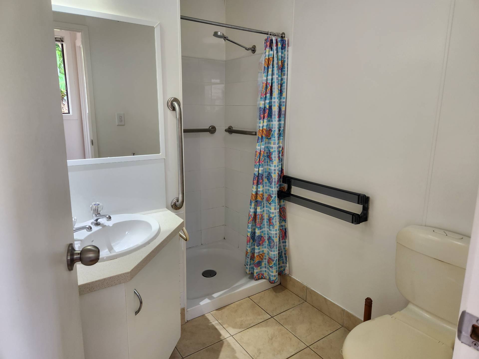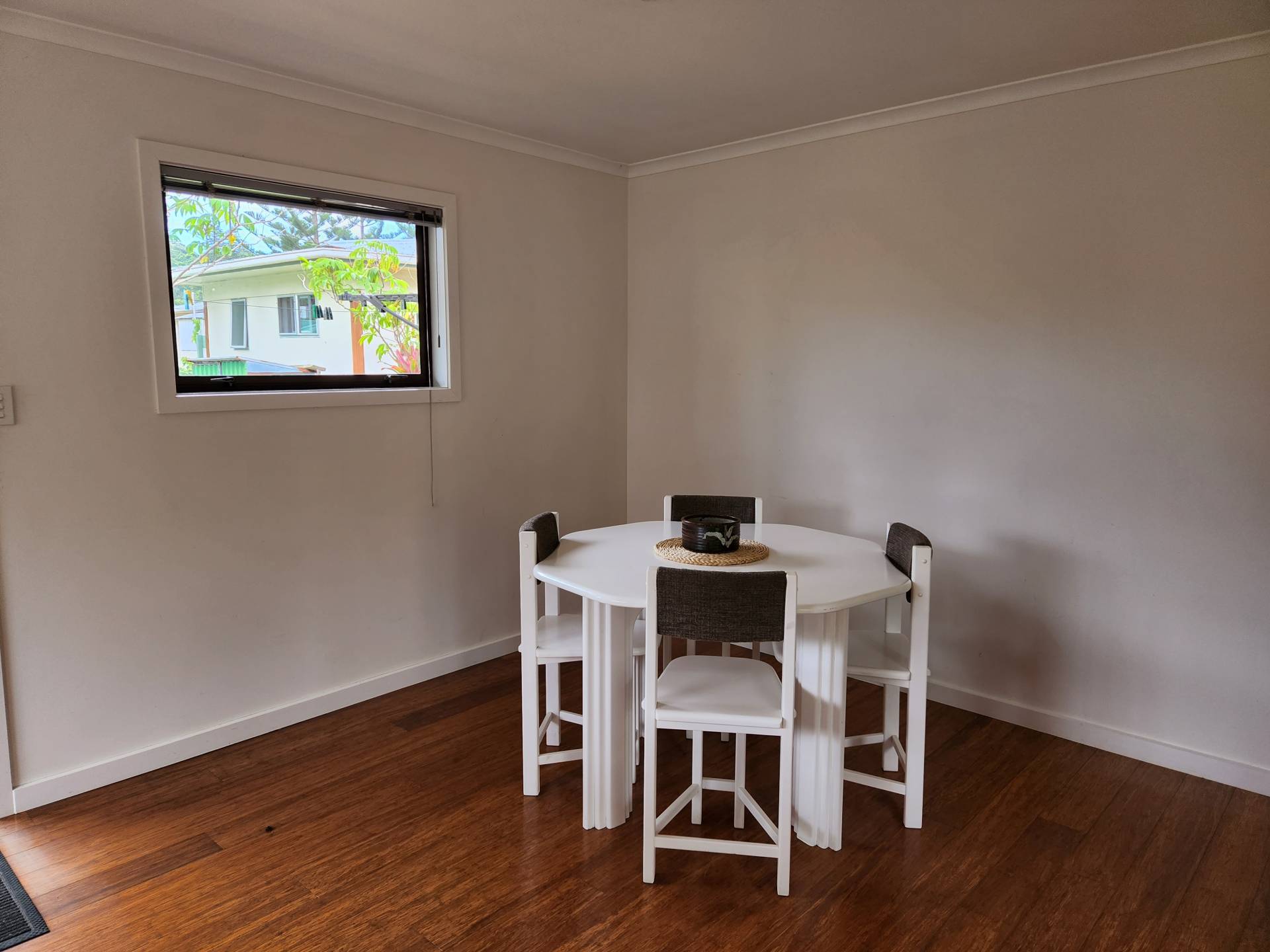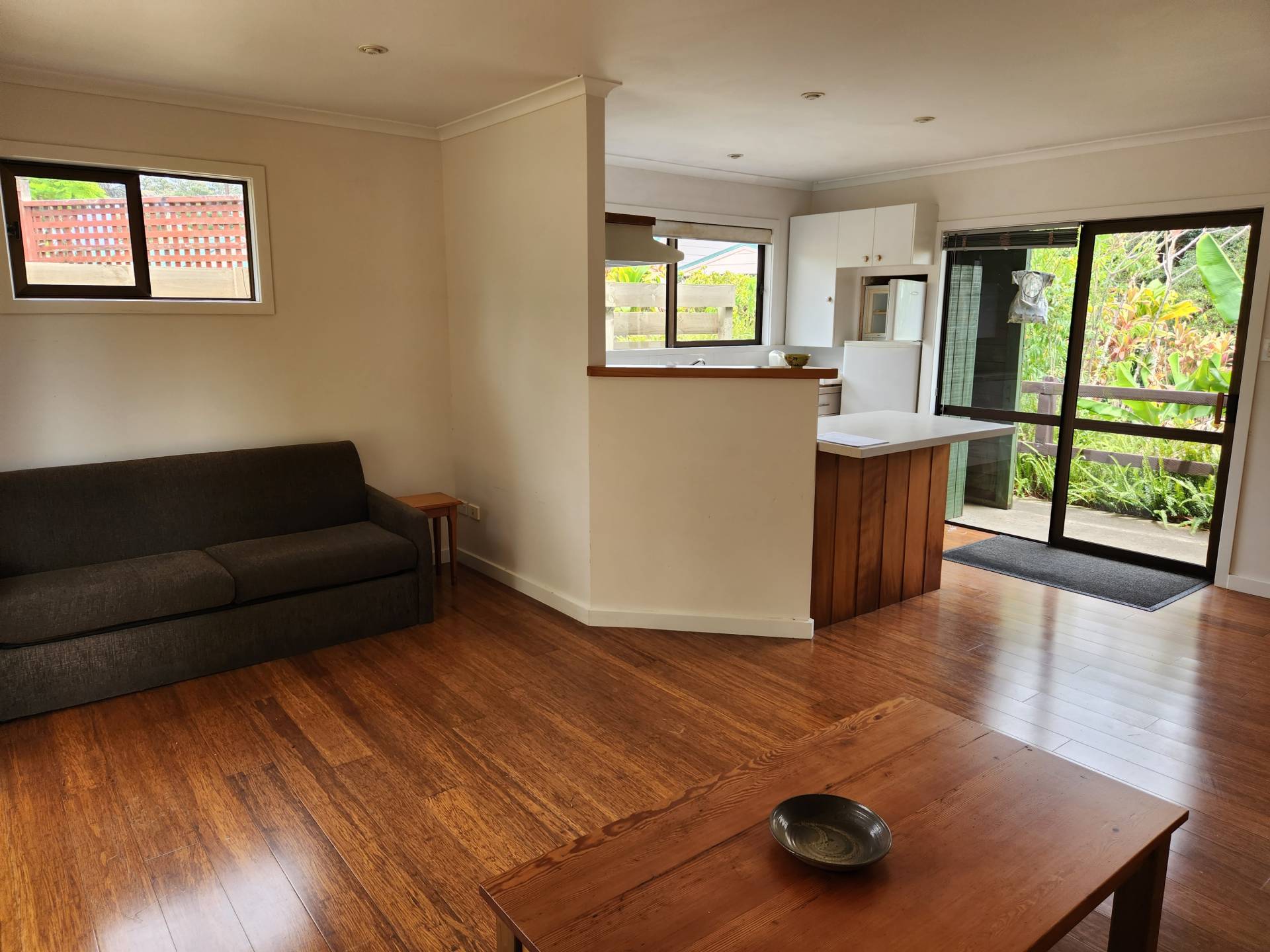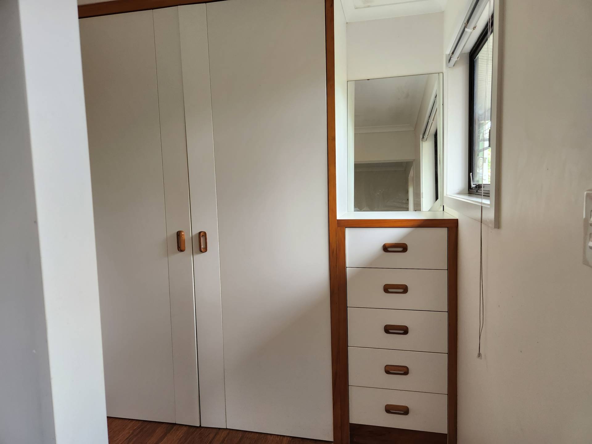 Open plan living/dining/kitchen area, separate bedroom, and storage facilities including built-in robes and linen cupboard. The back door from laundry opens onto a courtyard style clothesline.