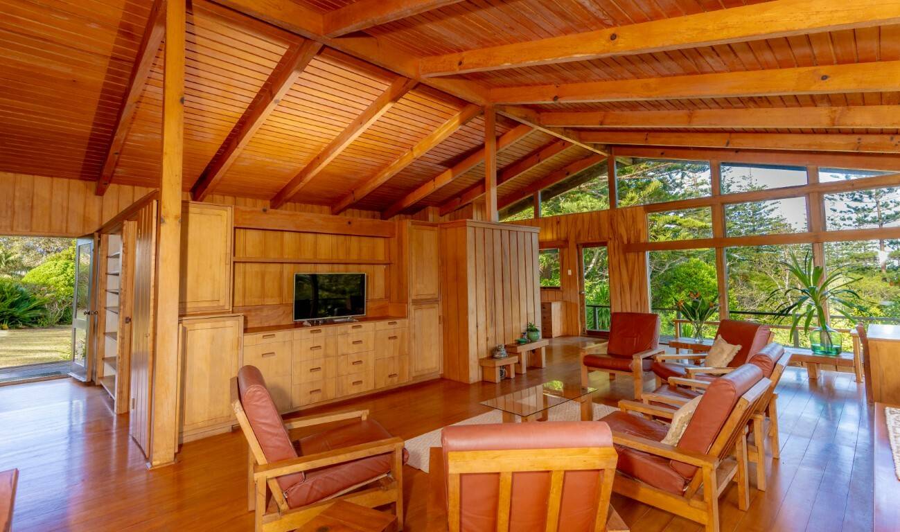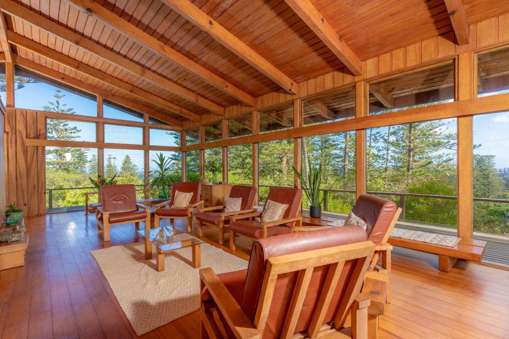 Framed by the pristine Norfolk Island National Park, is a unique 5.4-hectare property on Red Road containing a distinctive island home from hand-picked Norfolk Island pine. From an elevated position it enjoys views spanning across the treetops right out to the ocean. Rarely do homes take in nature with such splendour, promising tranquil mornings and serene evenings amidst the majestic outdoors.