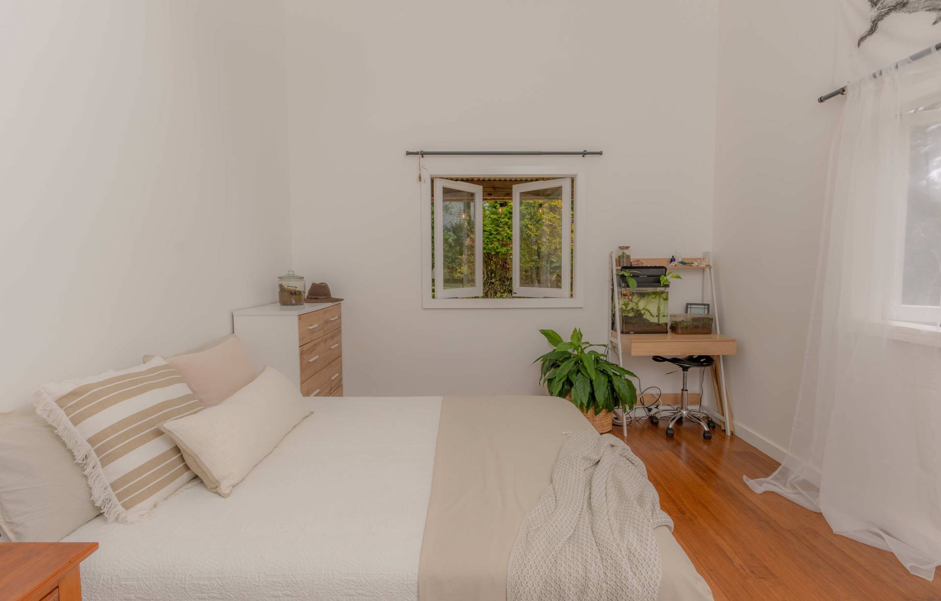 Polished timber floorboards throughout and freshly painted white walls ensure a light and bright feel throughout the house.