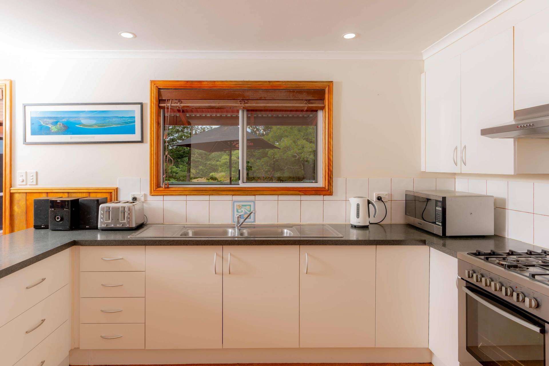 Step outside to discover two inviting deck areas - one at the front, basking in afternoon sunlight, and another at the rear, ideal for year-round outdoor living. Quality infrastructure adds value to this home, including a large 10,000-gallon tank, solar voltaic electricity, solar hot water system with a gas booster, and a 2-bay garage with a carport. Enjoy the convenience of low-maintenance gardens including established fruit trees and raised vegie gardens.