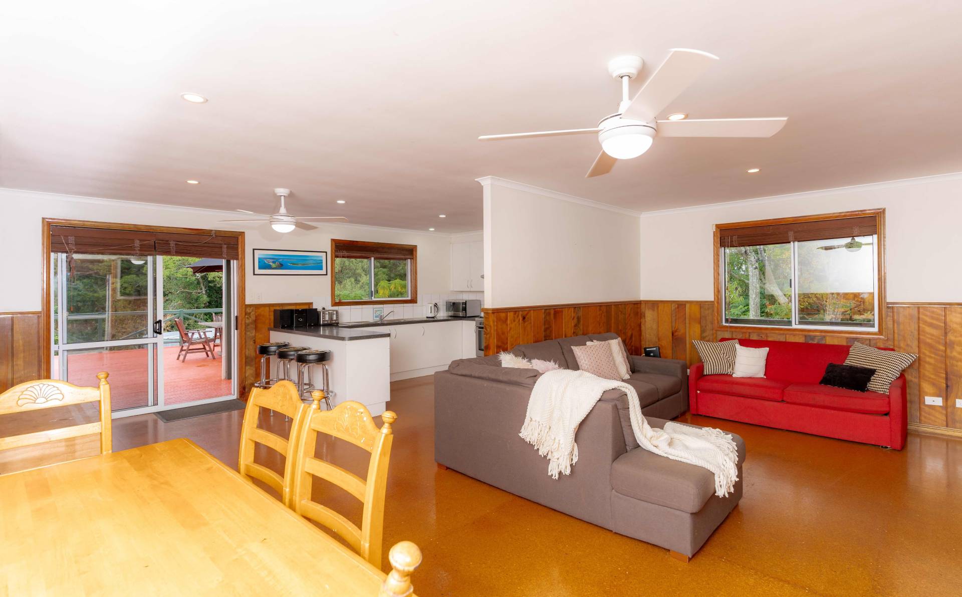 • Open-plan family area with lounge, dining, and kitchen