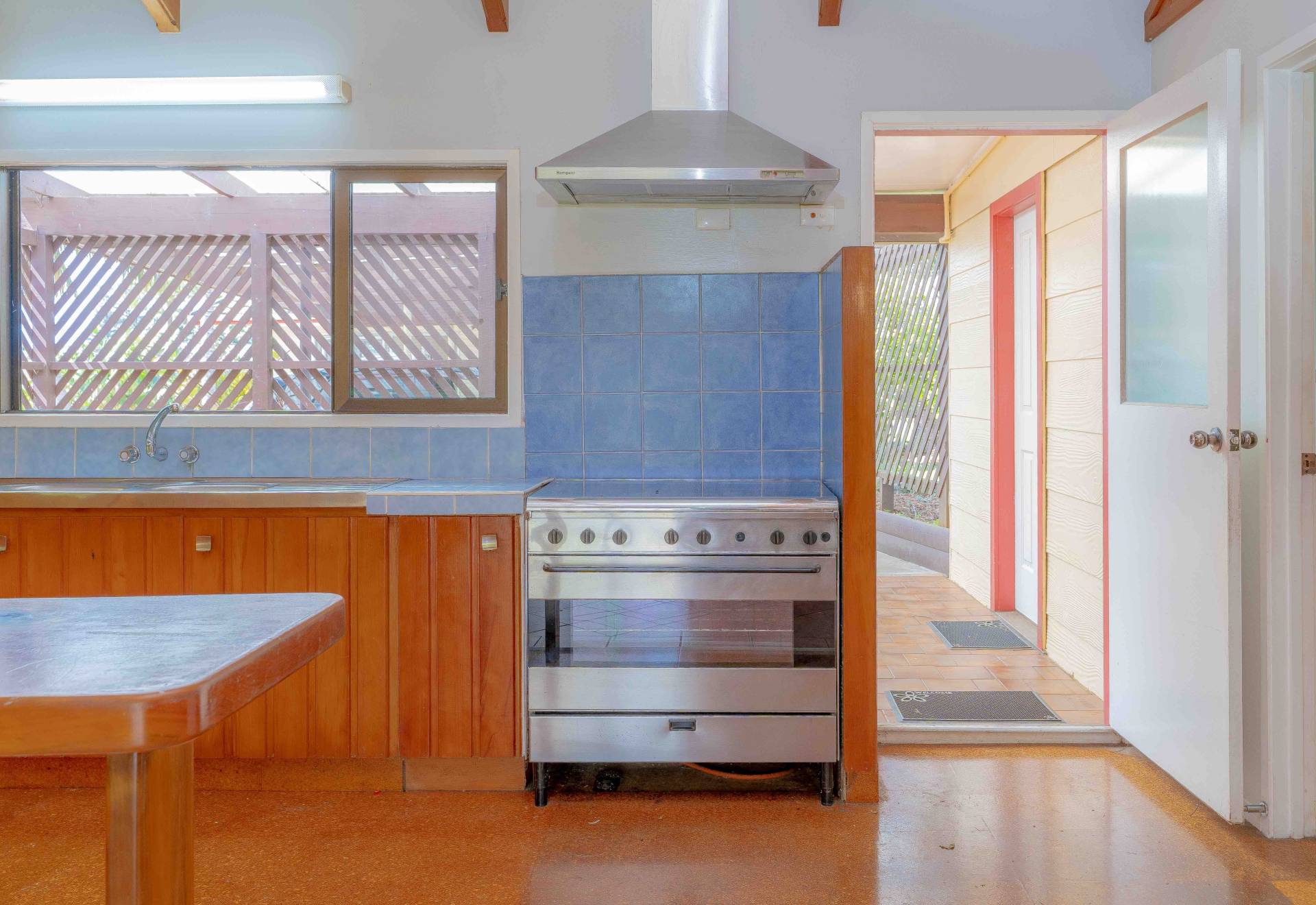 The family zone of kitchen, dining and living is tiled and open plan with high ceilings, and beautifully connects to the large undercover verandah.