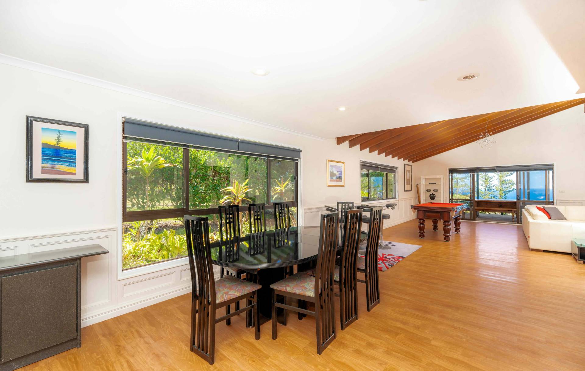 • Expansive open-plan living, dining, kitchen, and rumpus area, complete with a pool table and bar for effortless entertaining.
