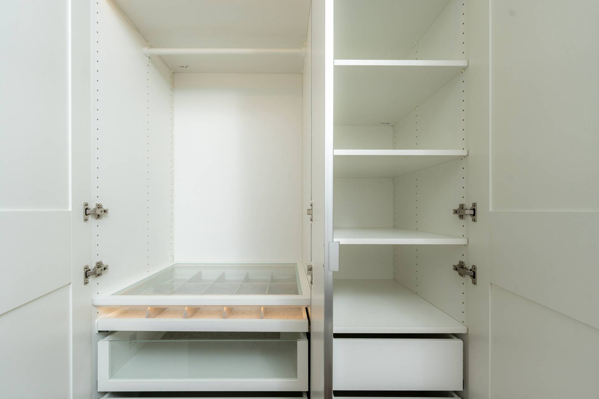 A sleek and functional galley kitchen, perfect for whipping up meals while maximizing space. Included in the kitchen is a washer/dryer for convenience.