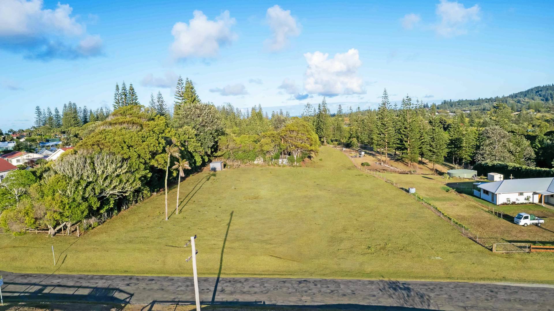 This outstanding 2-acre property on Cascade Road offers exceptional value, featuring a generous 52-metre road frontage and stunning views of Mount Pitt framed by majestic Norfolk pines. The land is cleared and flat, providing an ideal setting for development. A powered site with an existing storage shed adds to its practicality, making it a prime opportunity for those looking to build or invest.