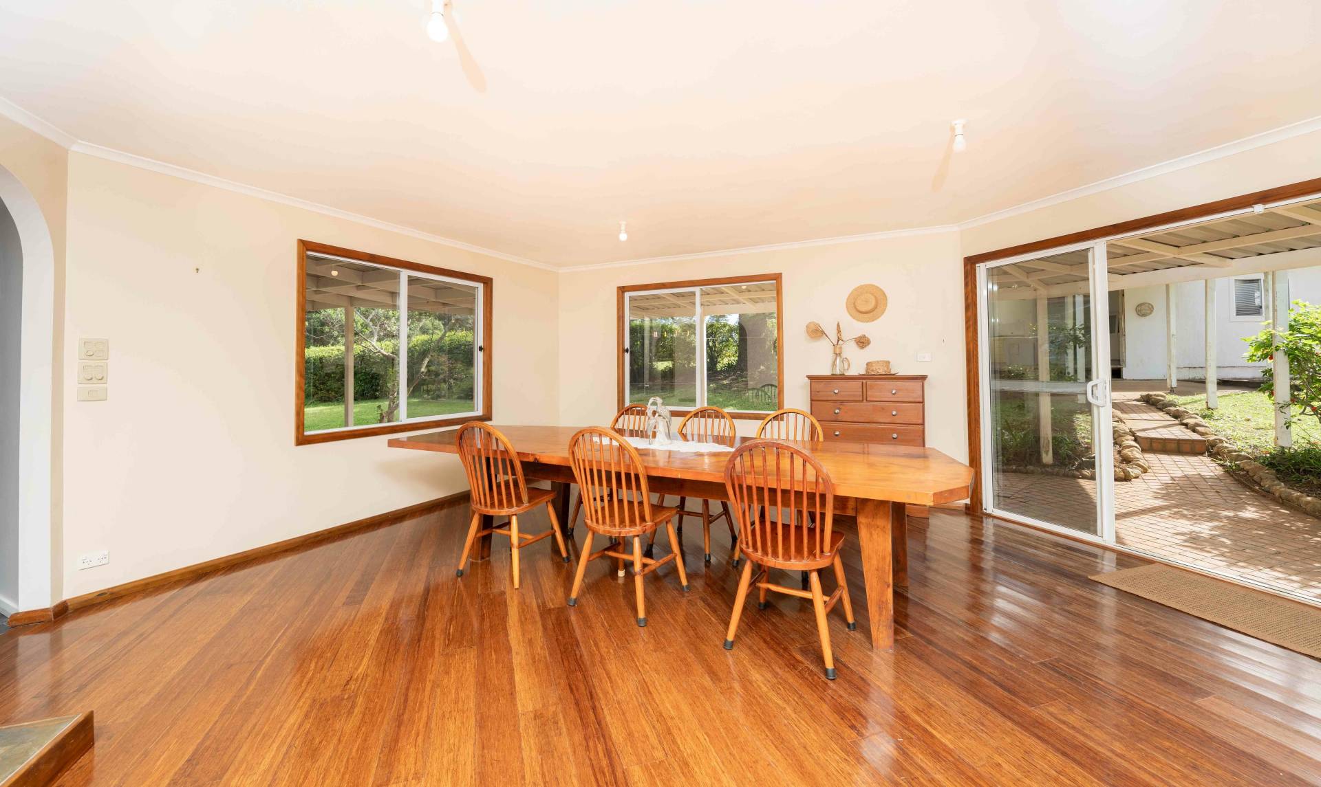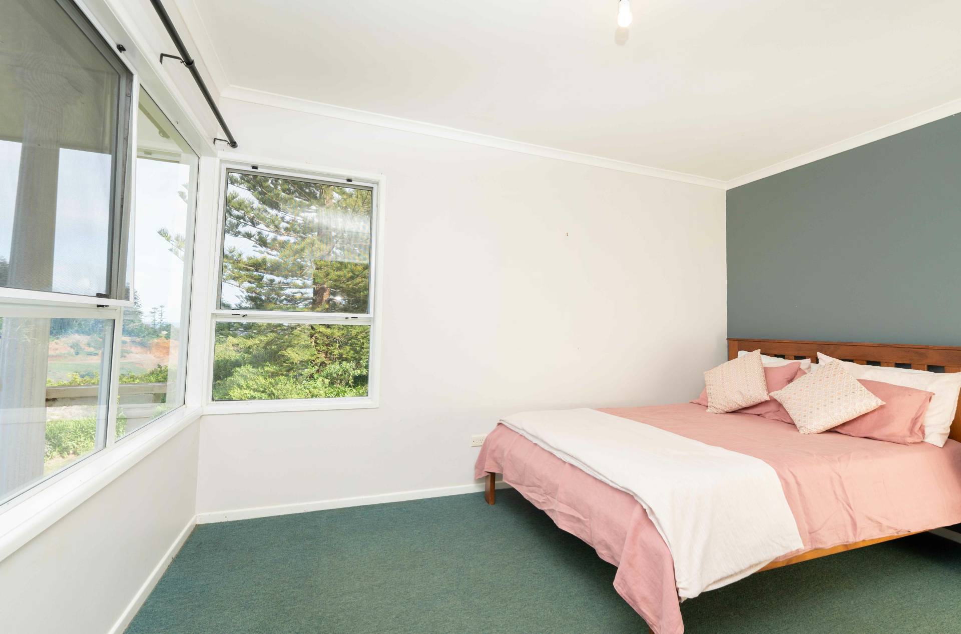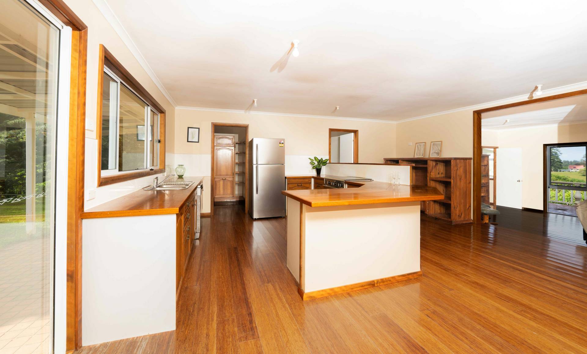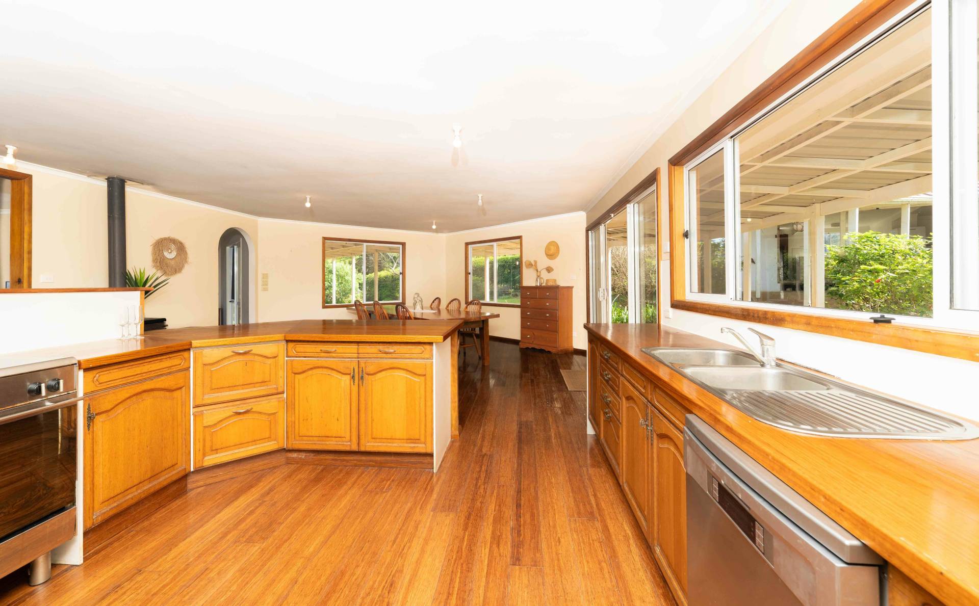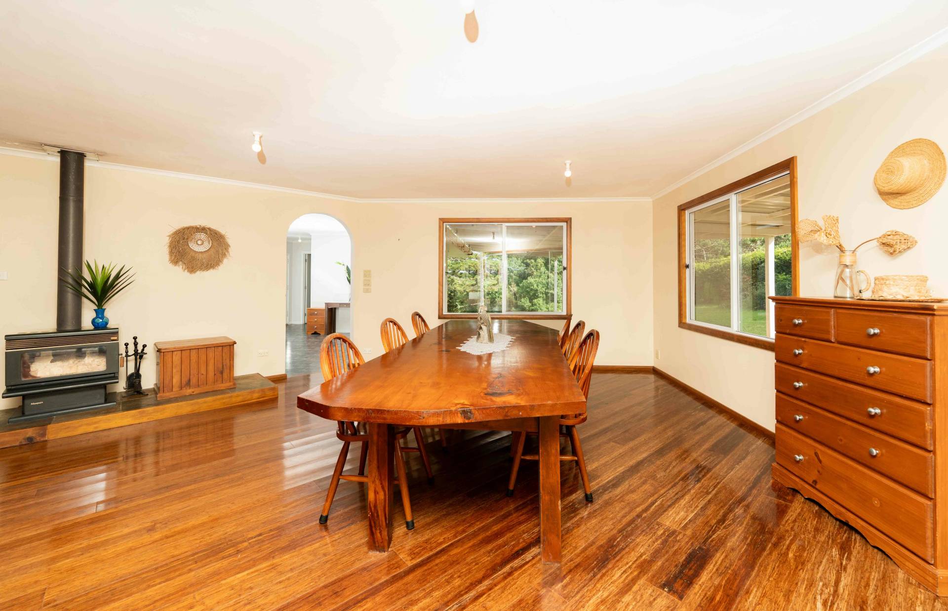 The main bedroom is a true retreat, with a high raked ceiling, stunning outlook to the ocean and valley, and a massive walk-in wardrobe. All bedrooms are a good size, and the two bathrooms offer practical family functionality. Aluminium windows and doors throughout enhance the home’s durability and energy efficiency. A rear veranda takes full advantage of the rural setting, offering excellent ocean views and a great space for entertaining or simply enjoying the natural surroundings.