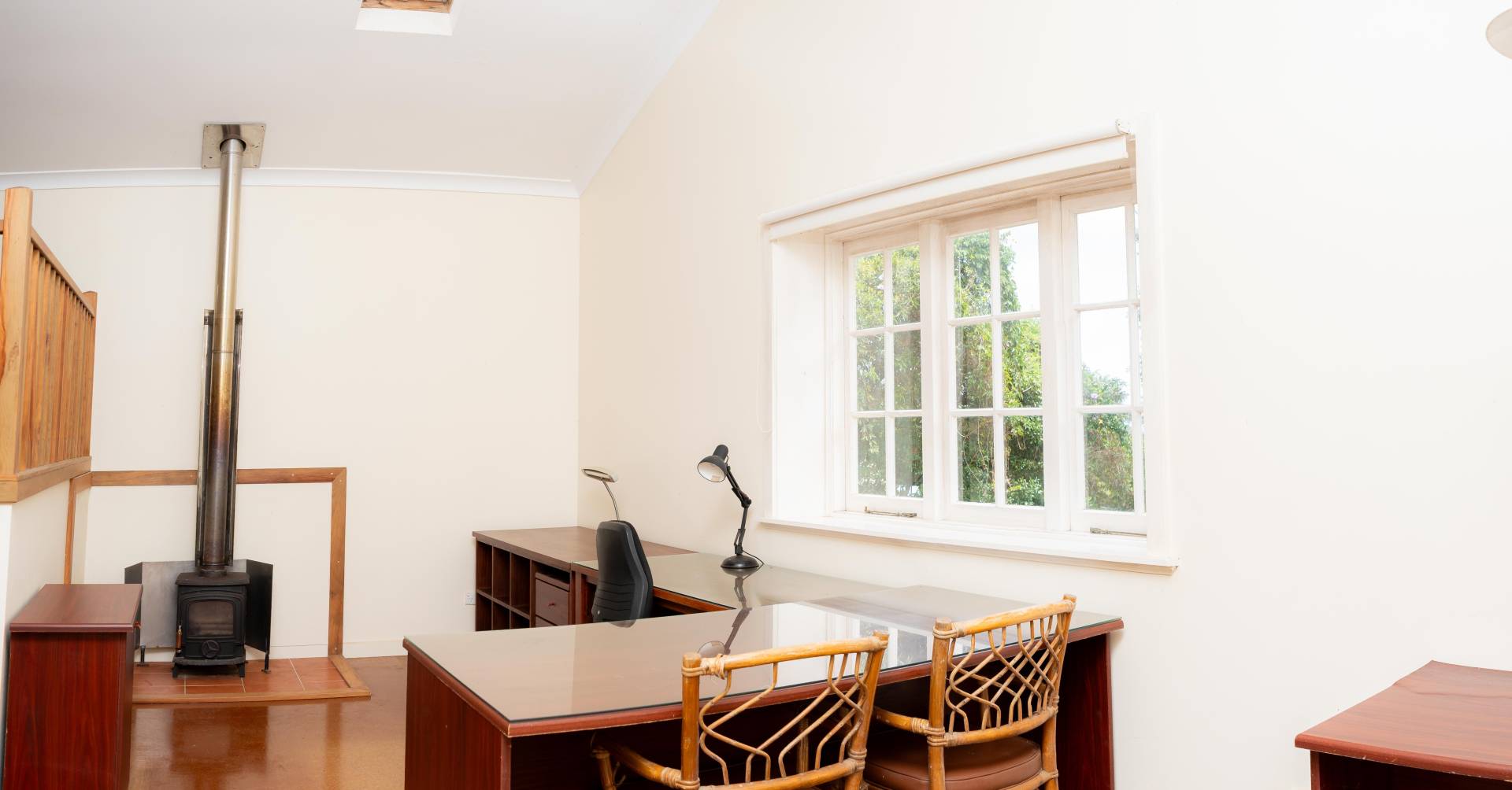 • Across the breezeway, a large split-level room, currently used as a business office. This impressive space could transform into a luxurious master suite (potential 4th bedroom), complete with its own sitting area and a slow-combustion fireplace - ideal for cozy retreats.