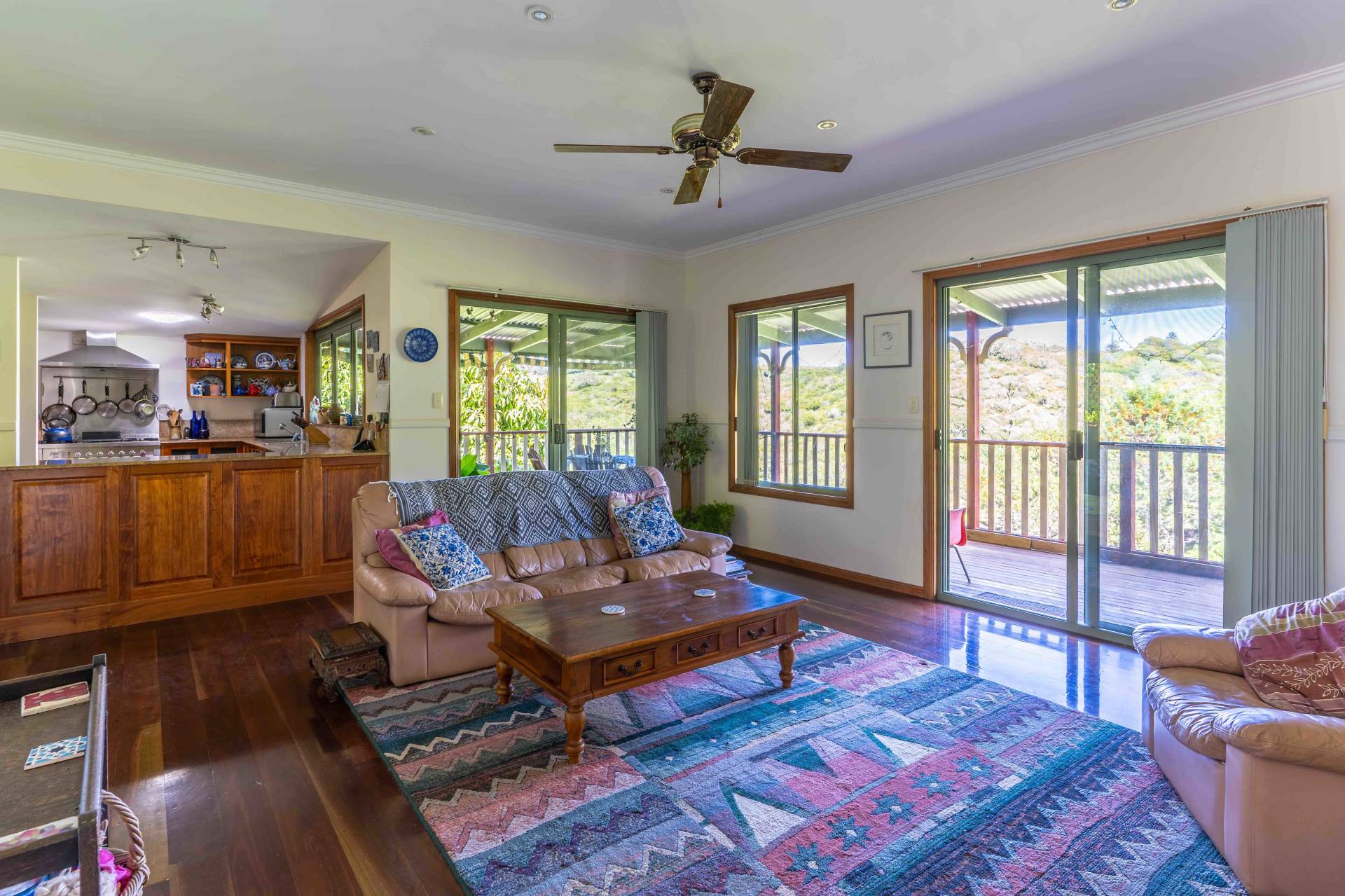 Nestled securely into a picturesque rolling hillside and valley, this beautifully appointed Queenslander-style home offers exceptional privacy, tranquillity, and versatility. Set on approximately 2 acres of fertile land, the property has established fruit trees, creating the ideal environment for a peaceful lifestyle.