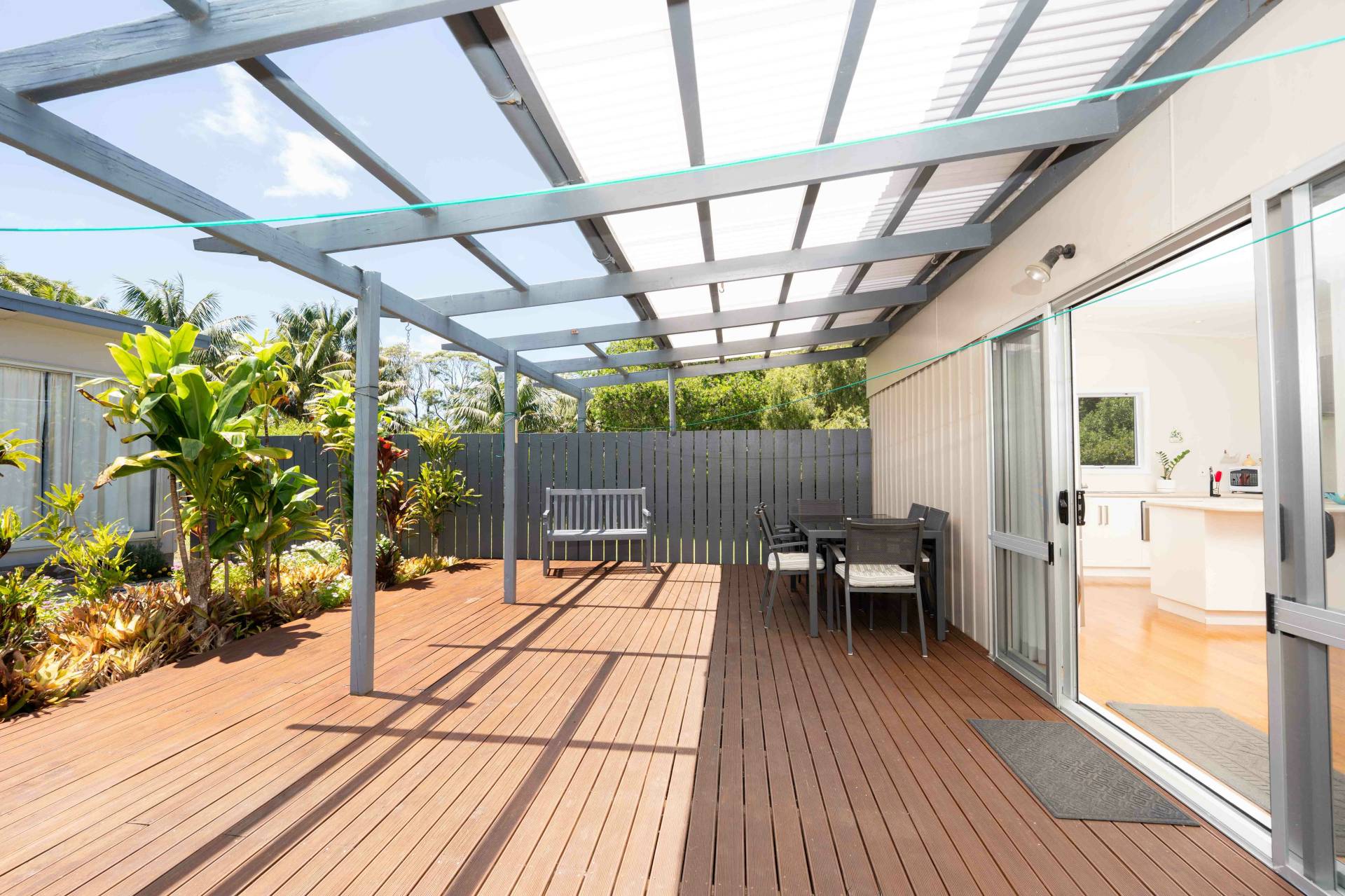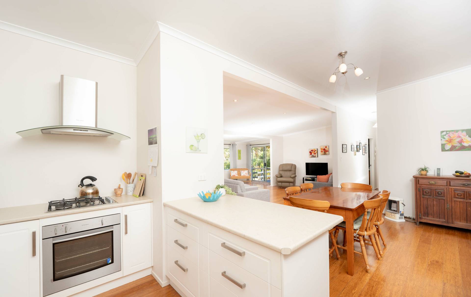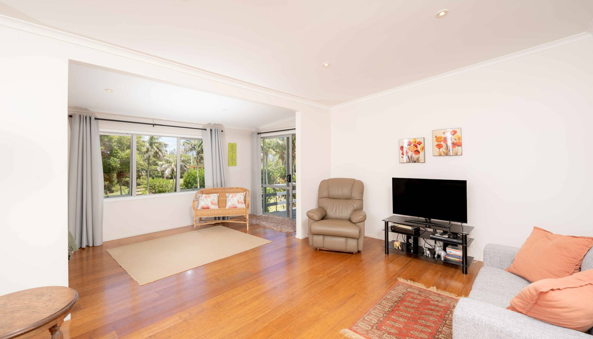 Set on a flat, fully fenced 1-acre parcel, the grounds are beautifully landscaped with well-established fruit trees, creating a secure and family-friendly environment. Rural outlooks are enjoyed from the property, along with glimpses of the ocean from the front corner – a gentle reminder of the island lifestyle on offer.